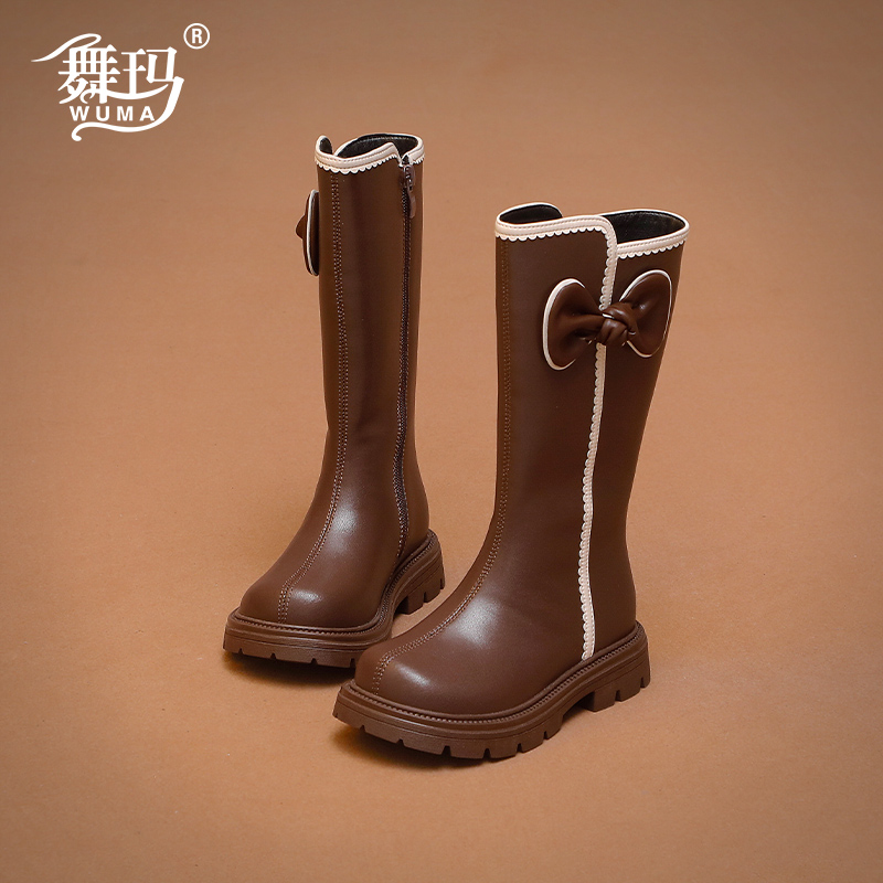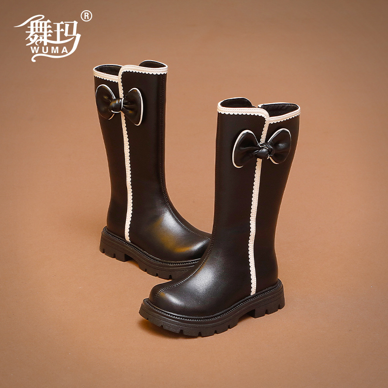 小女孩长筒靴加绒女宝宝皮靴 冬季 舞玛女童鞋 子儿童高筒靴2025新款