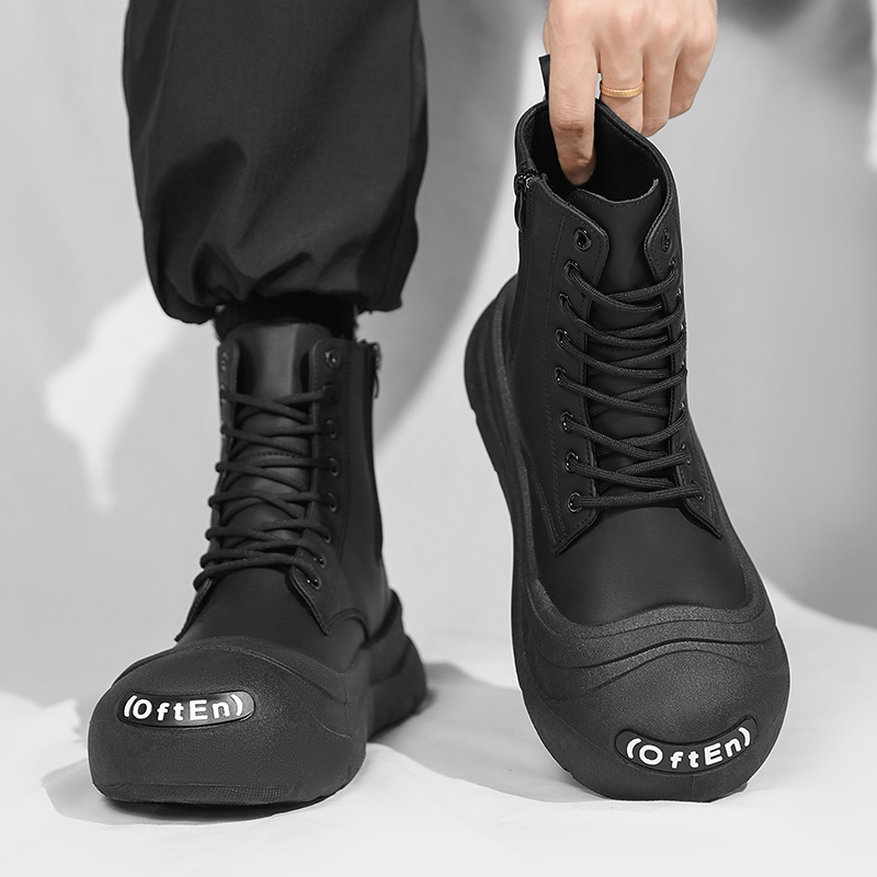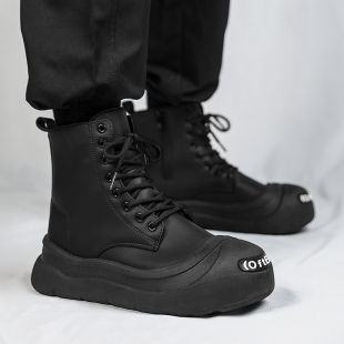 靴子 真皮防水厚底增高工装 森马马丁靴男秋季 高帮百搭休闲白色板鞋