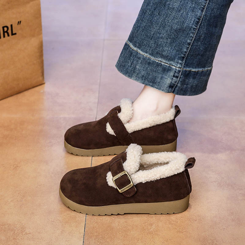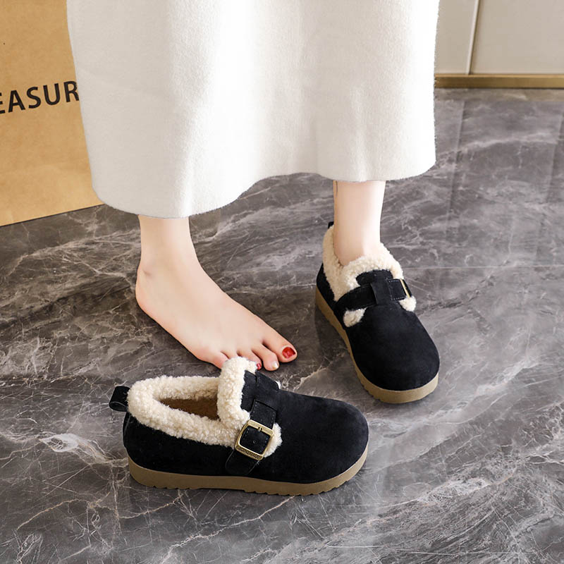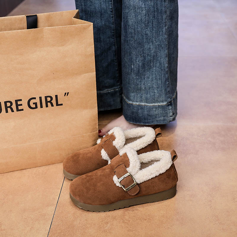 2025新款 加绒保暖孕妇鞋 防滑勃肯鞋 平底毛毛鞋 低帮棉鞋 34码 女冬季