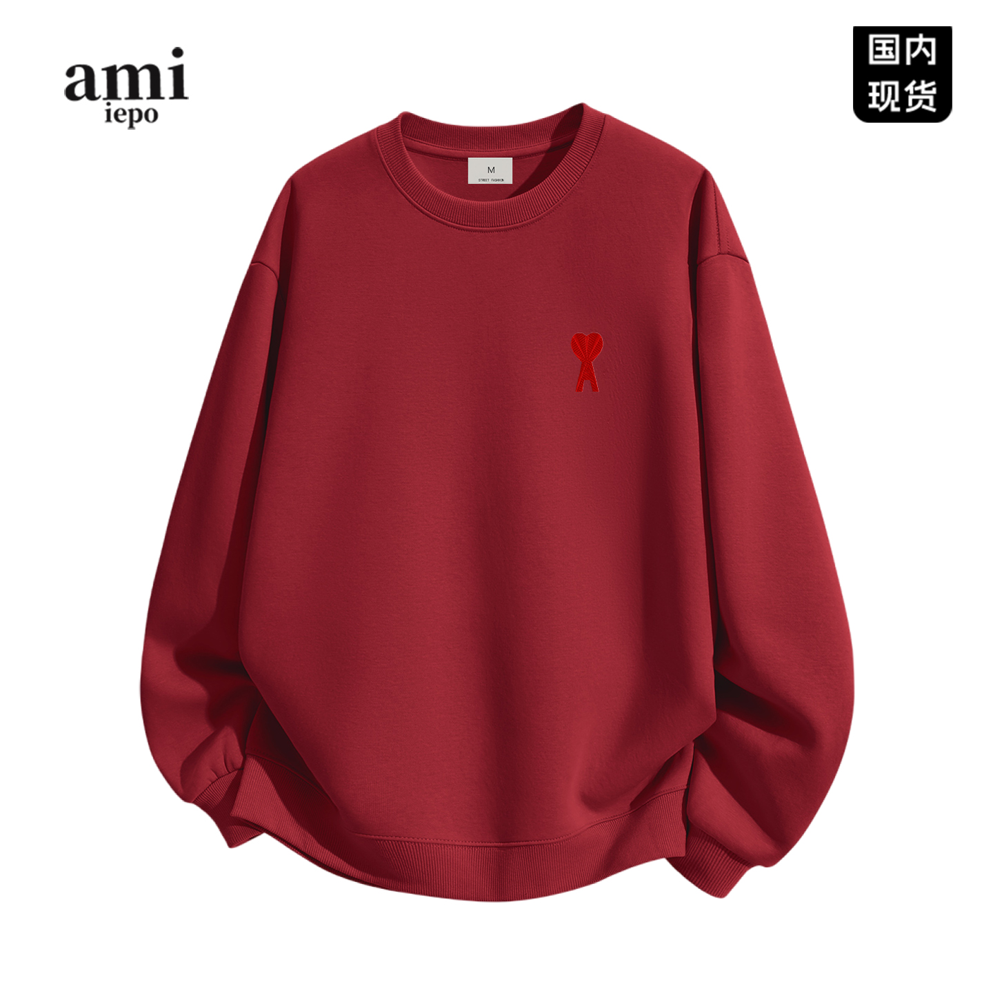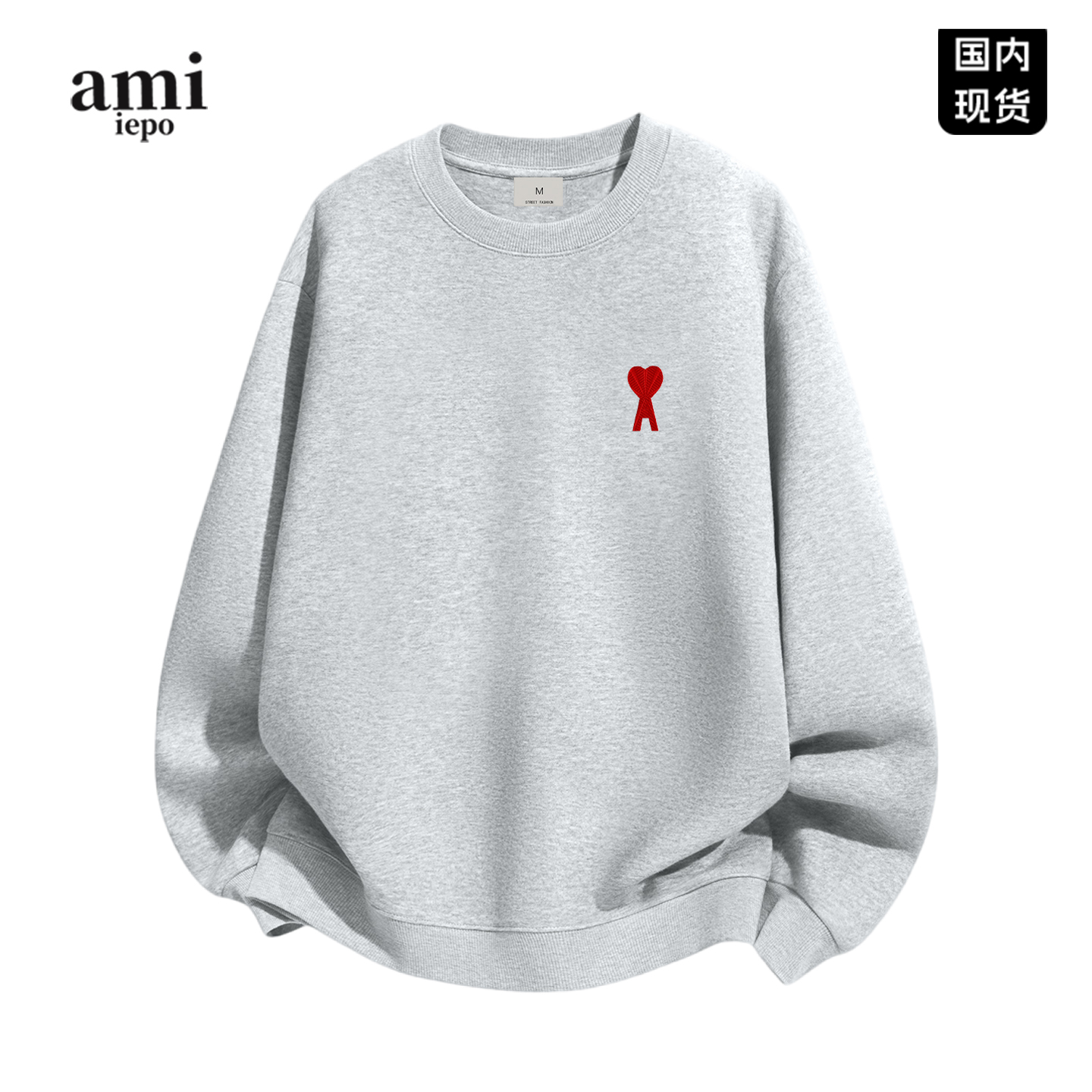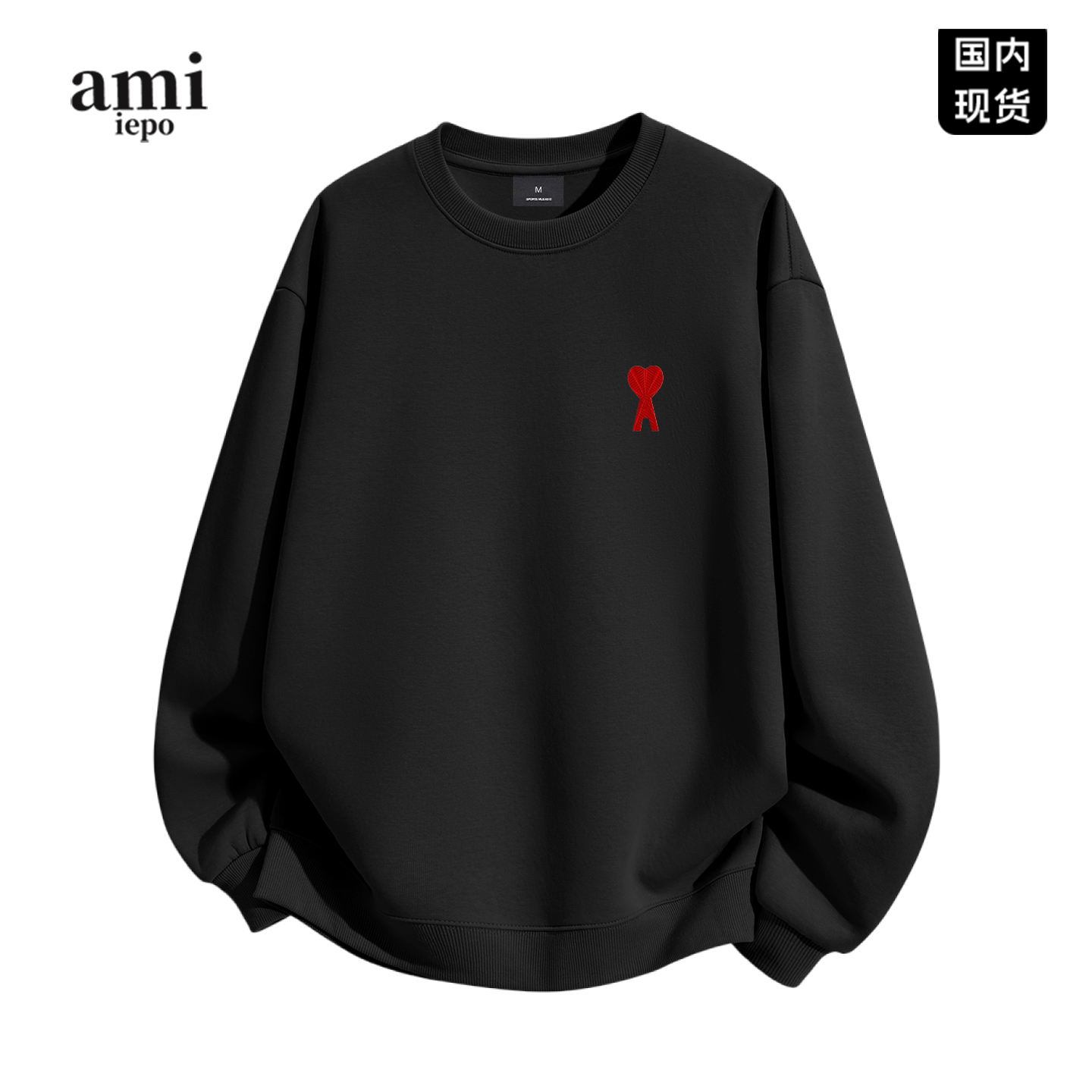 打底衫 潮牌休闲爱心情侣款 iepo官方粉色圆领卫衣男女秋冬新款 Ami