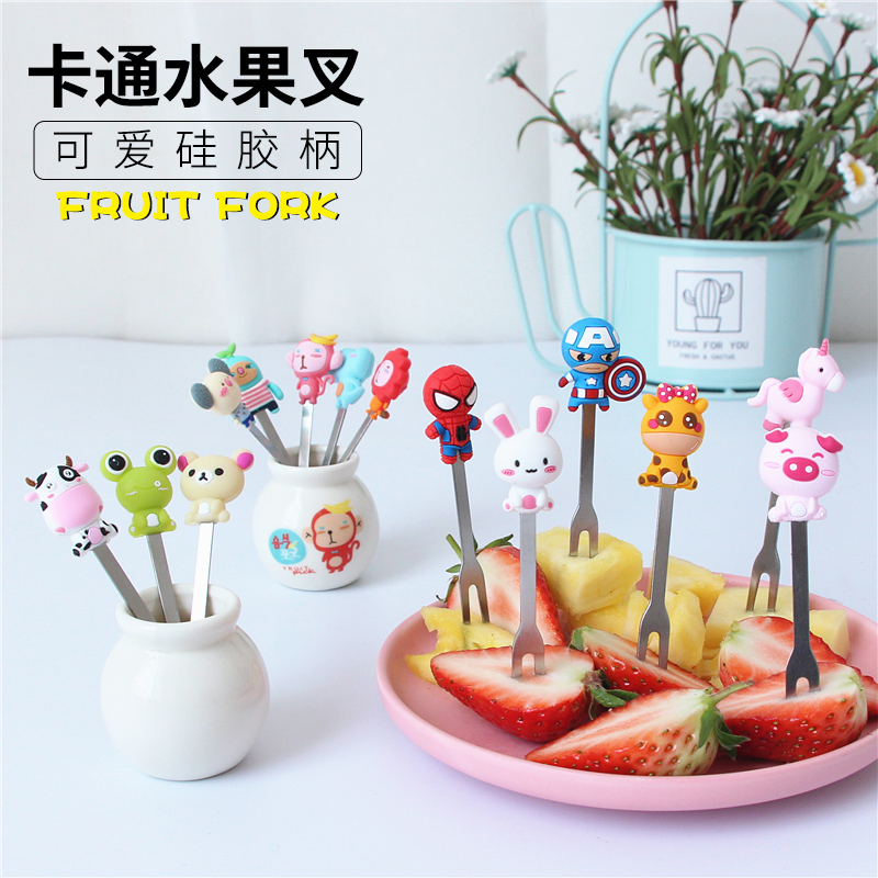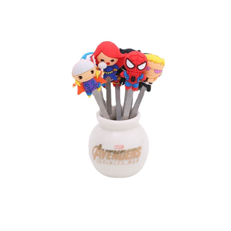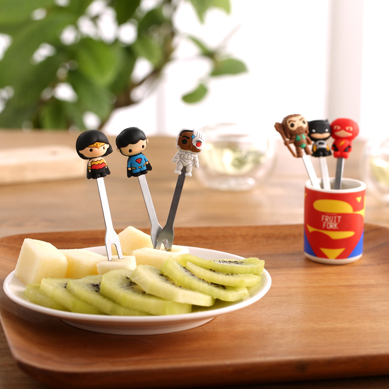 英雄收纳罐迷你创意不锈钢水果叉套装 可爱卡通儿童水果签水果叉