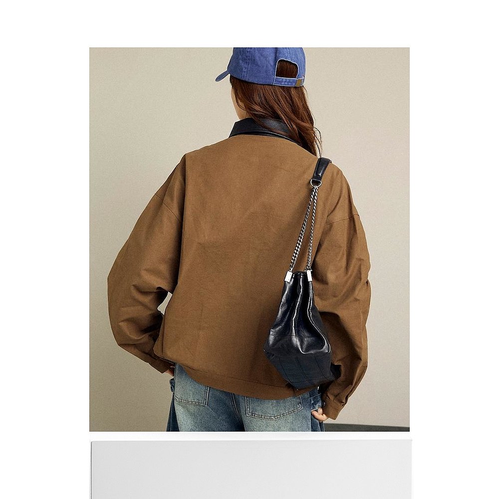 上衣男女 复古翻领夹克格子拼接短外套潮休闲工装 Achock官方店