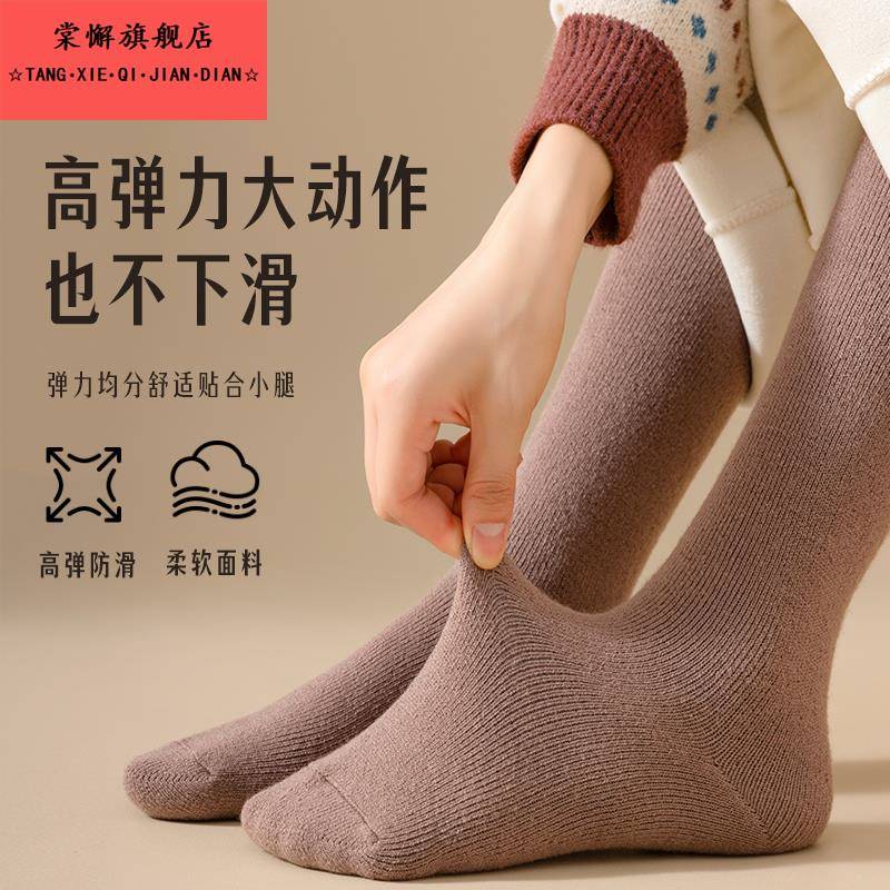 长筒靴袜子女搭配靴子小腿堆堆过膝袜春秋内搭白色大腿长筒袜羊毛