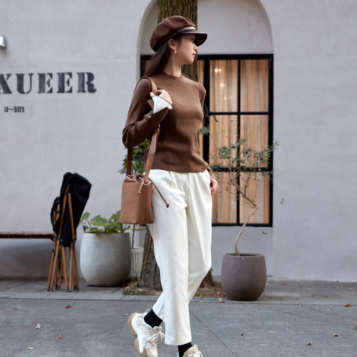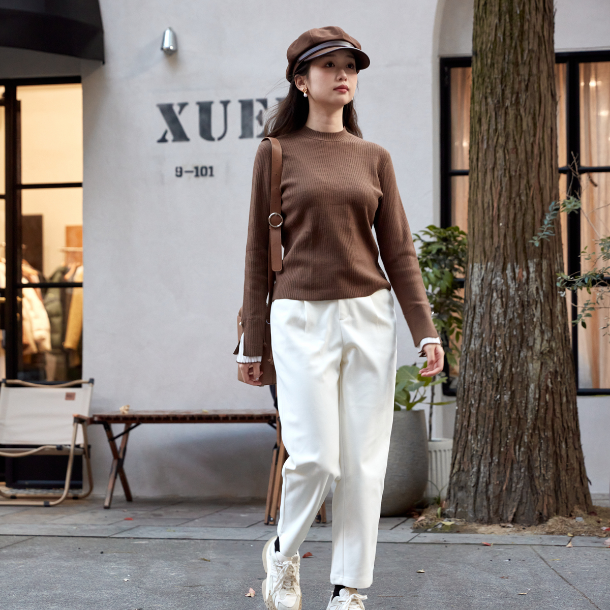 女装 打底衫 冬季 撞色褶皱拼接袖 HD8112004 新款 西町村屋韩系针织衫