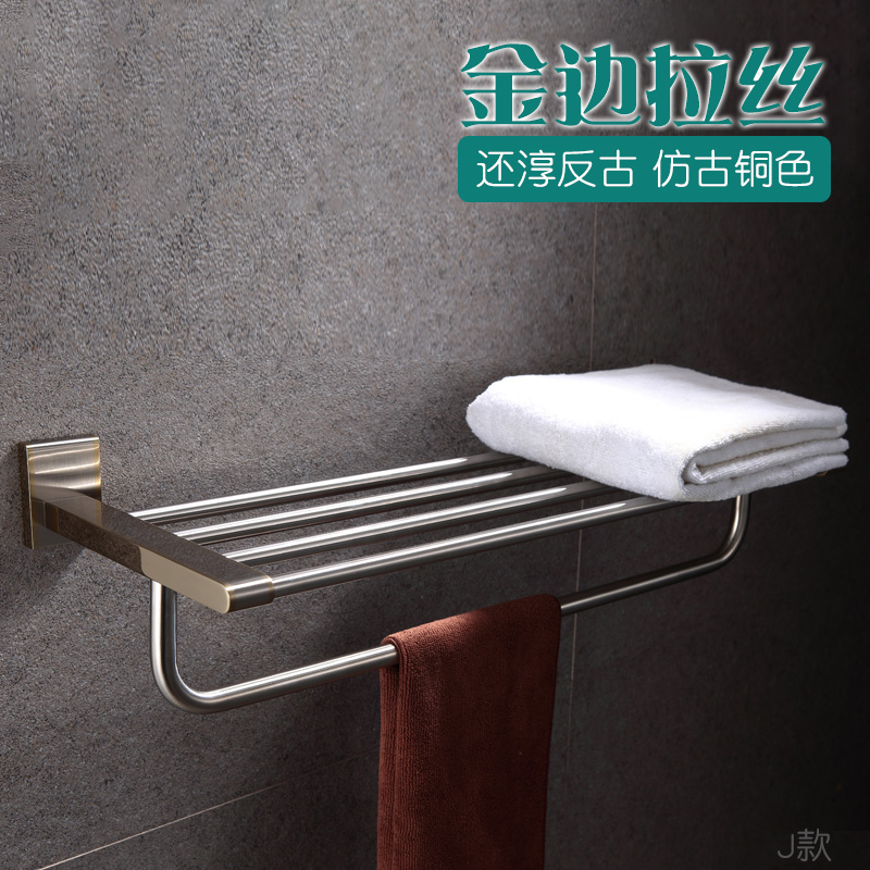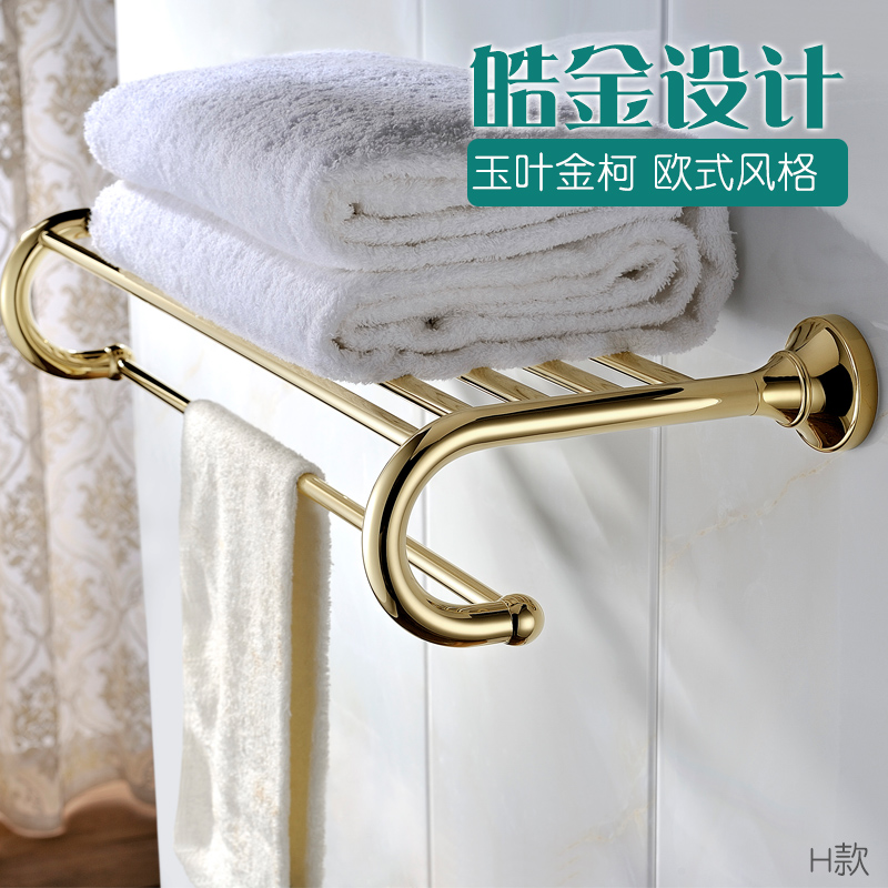 潜水艇浴巾架卫生间浴室厕所置物架轻奢风精铜双层晾放毛巾挂打孔