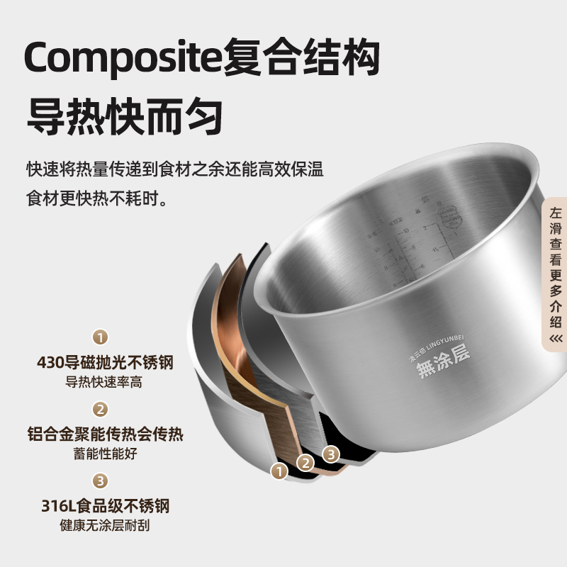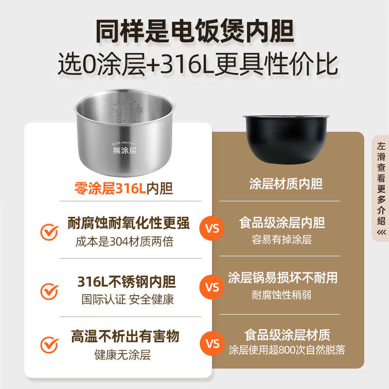 凌云倍316L不锈钢适用米家小米N1电饭煲3L4升无涂层内胆MFB13A0锅