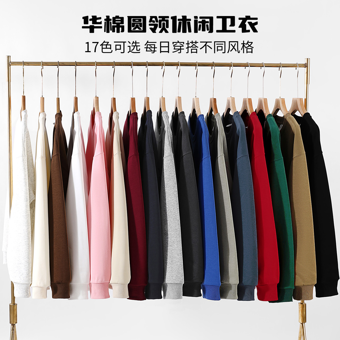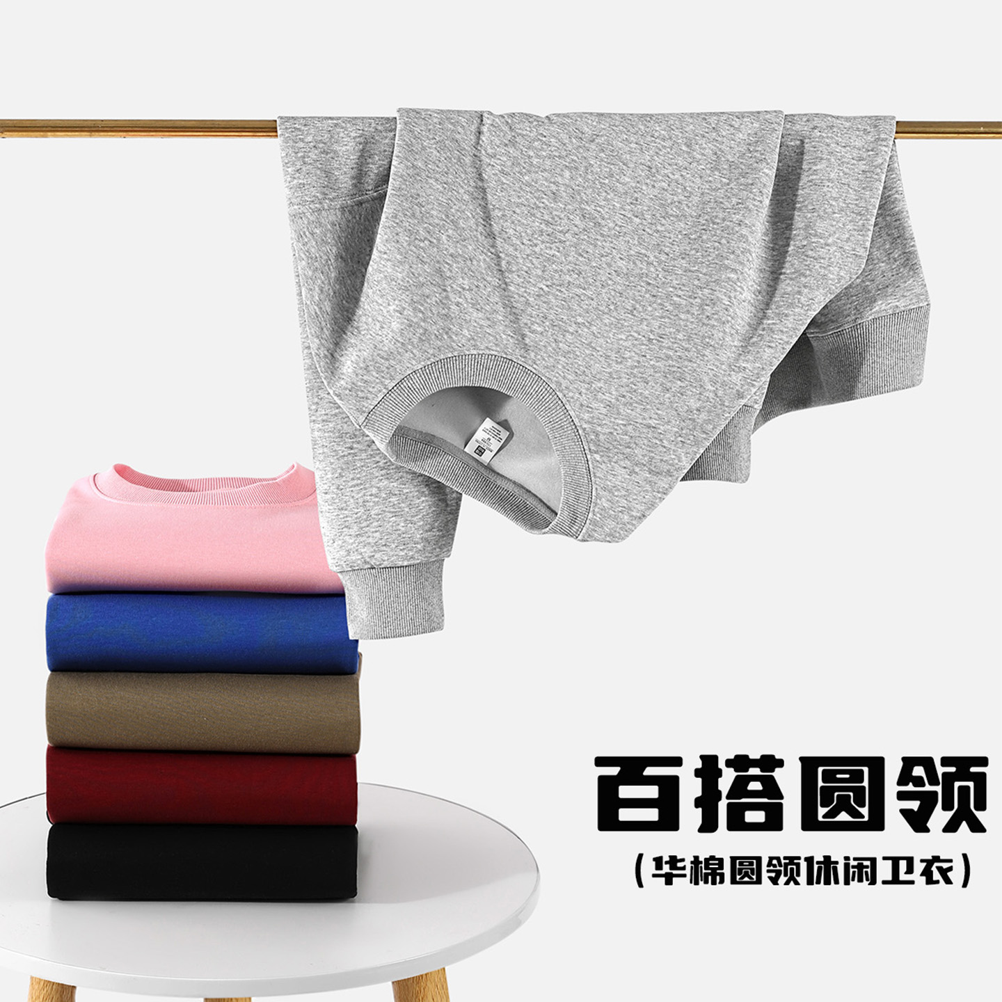 休闲运动落肩圆领打底卫衣长袖 白色内搭纯色棉质工作服定制印logo