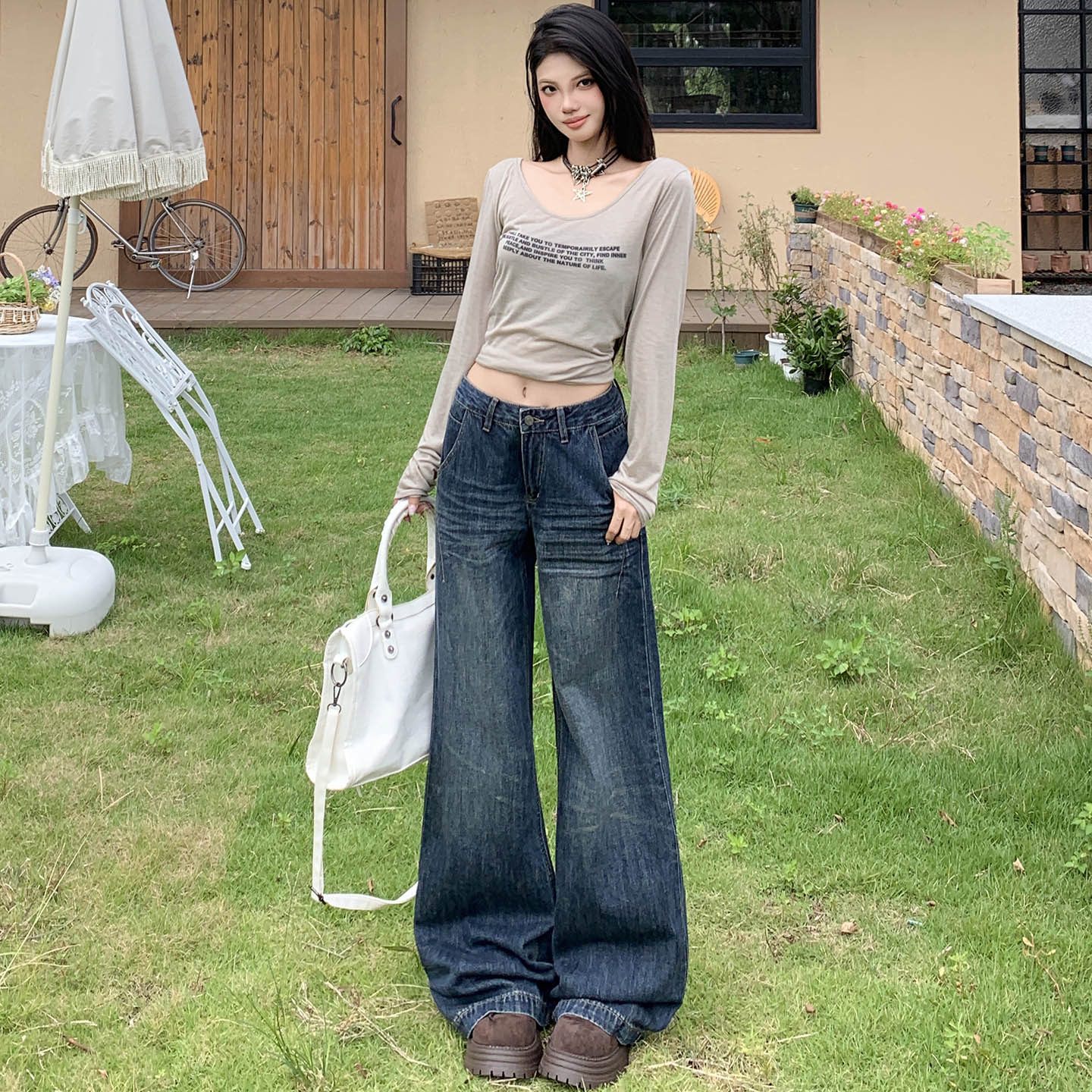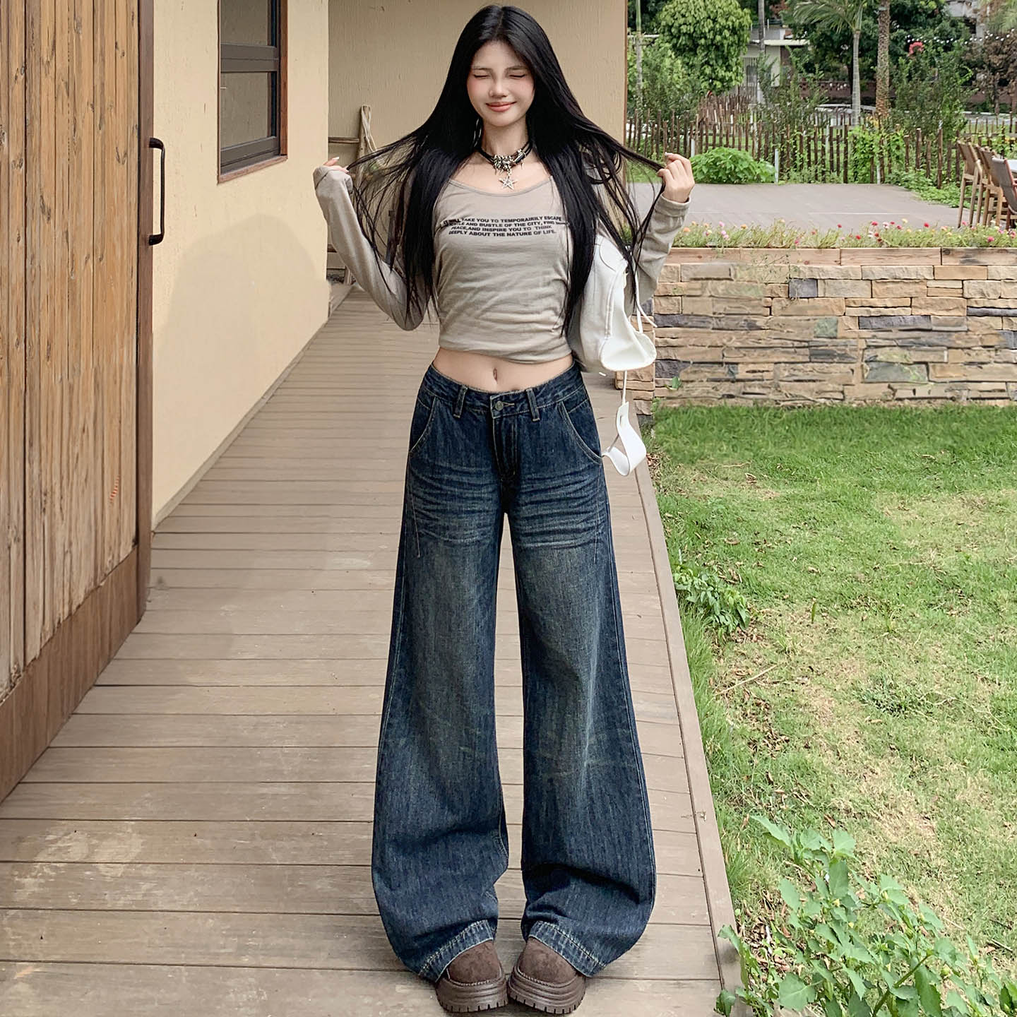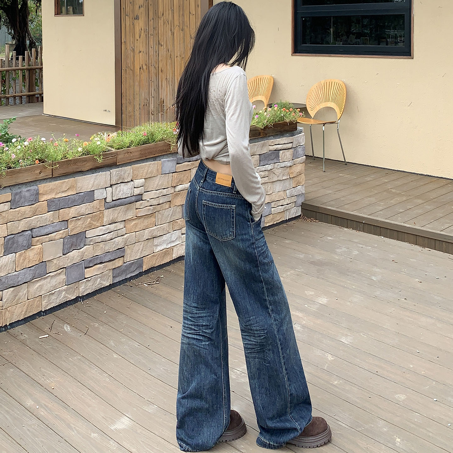 女秋季 慵懒风显瘦直筒宽松拖地裤 新款 设计感美式 子 个性 阔腿牛仔裤