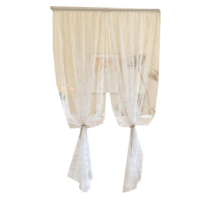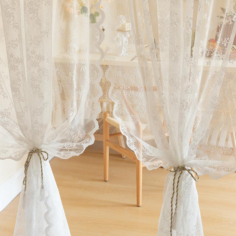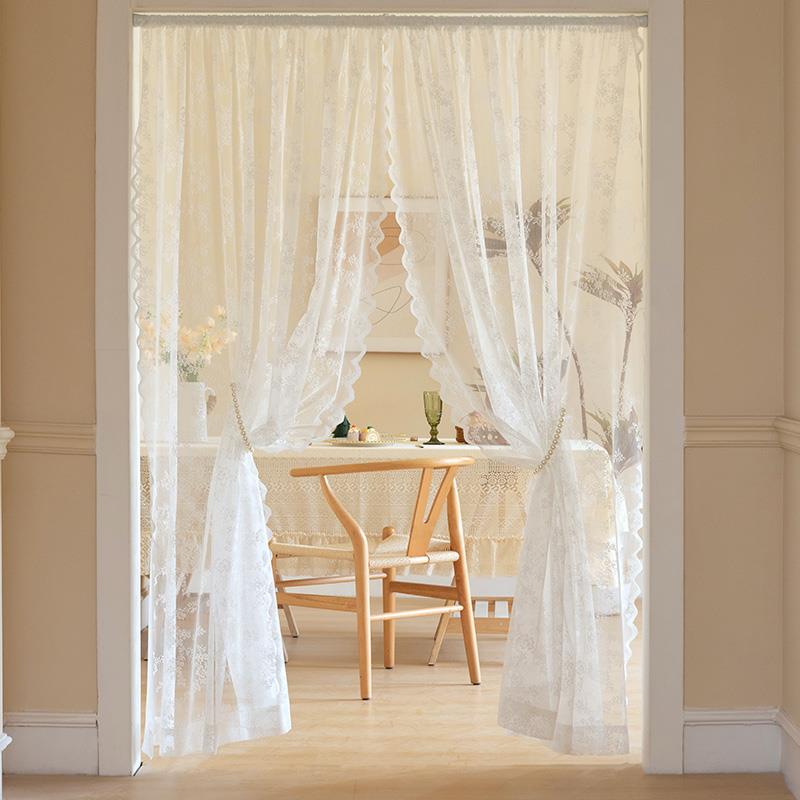 2024新款 白色蕾丝飘窗门帘隔断穿杆帘 免打孔魔术贴窗帘窗纱帘法式