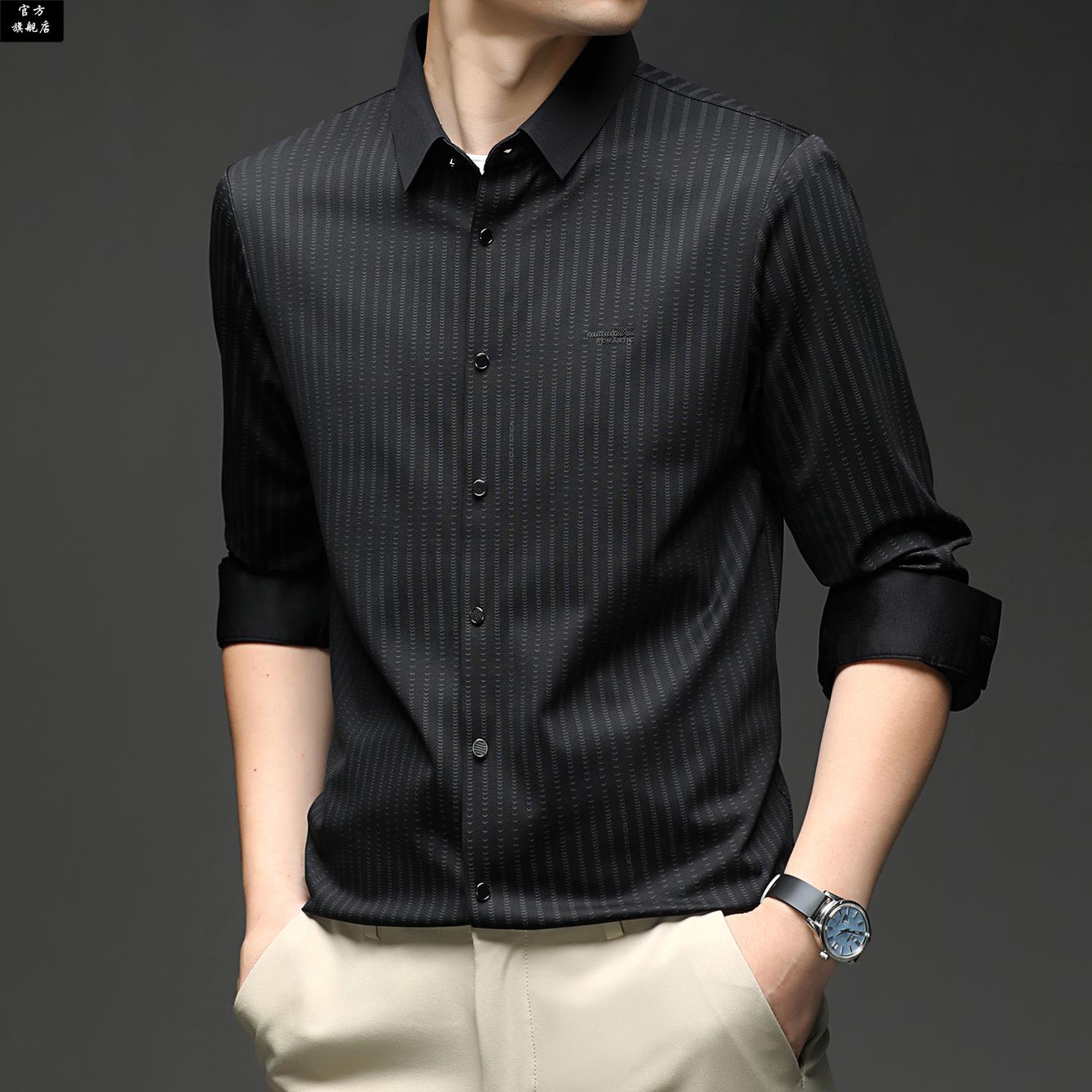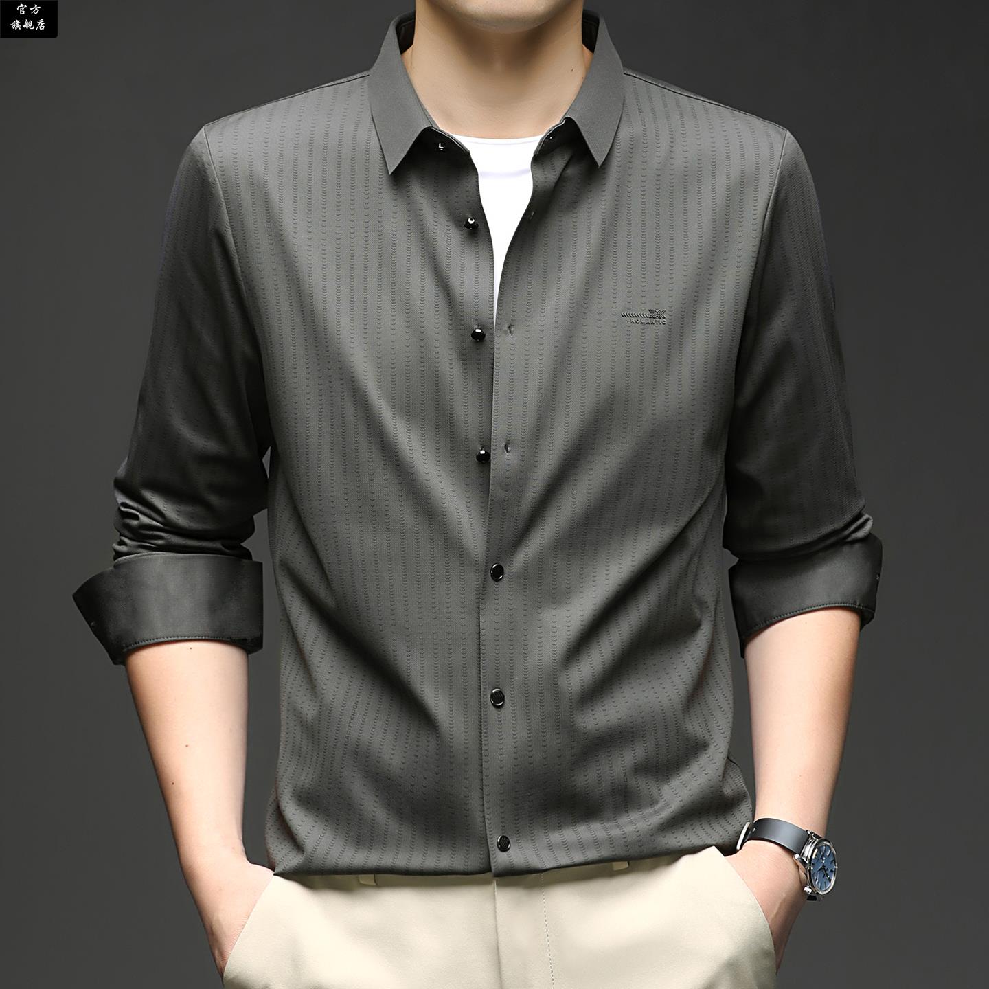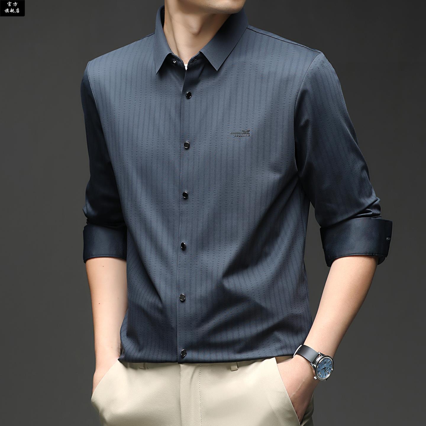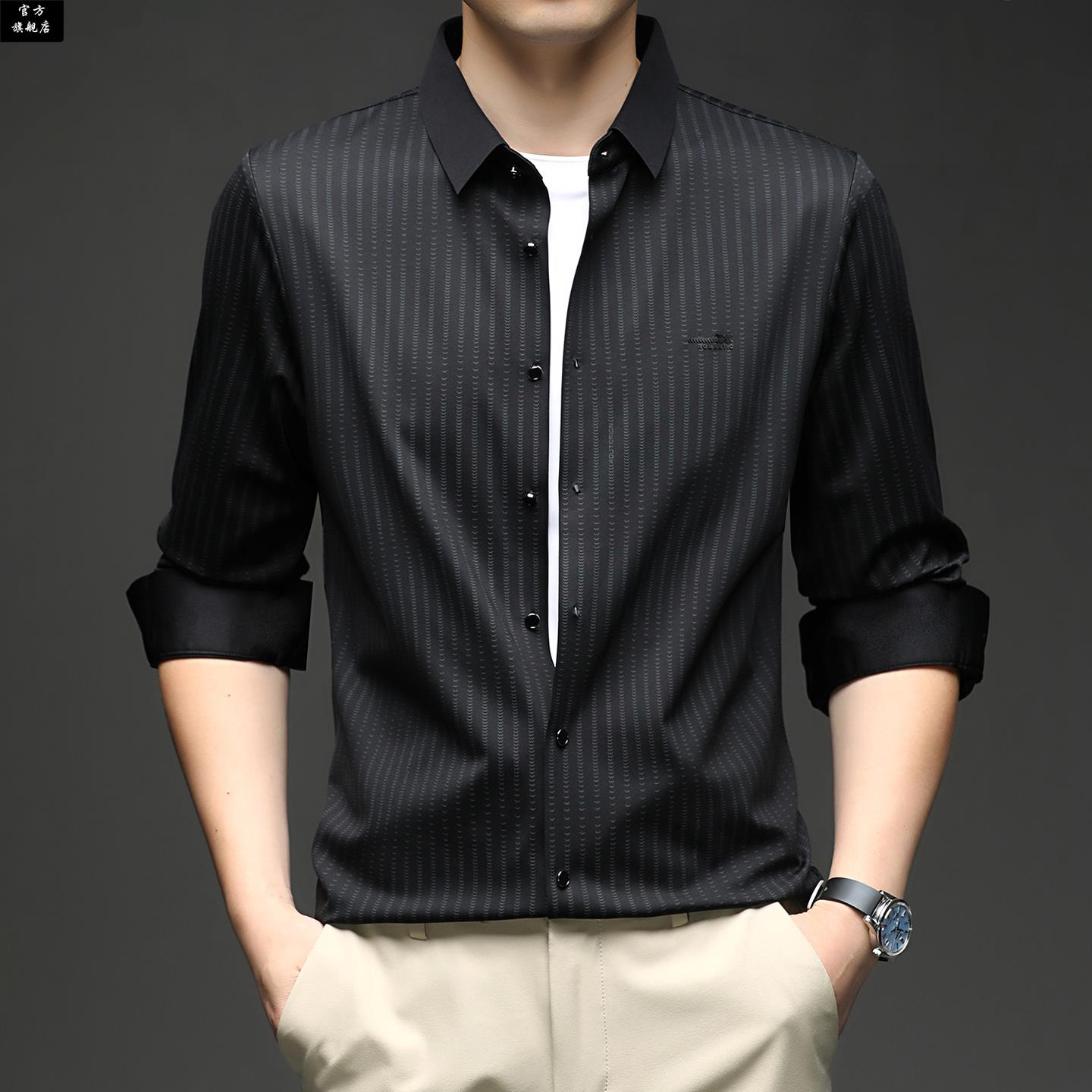 男条纹休闲薄款 保罗官方春秋季 衬衫 长袖 上衣中年爸爸宽松高端 新款
