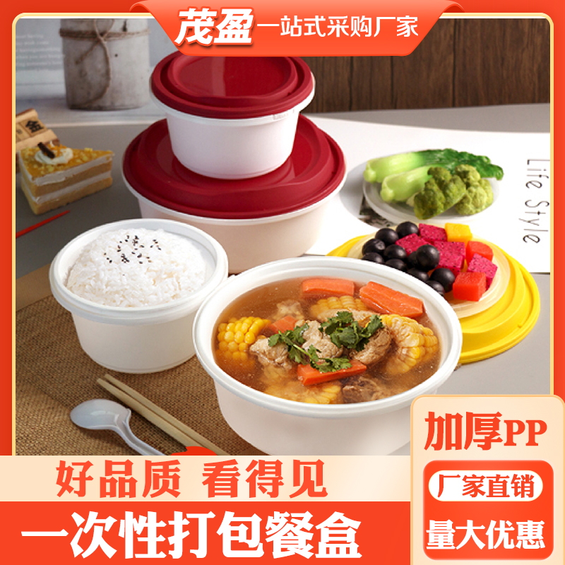 茂盈工厂直销 一次性餐盒圆形打包盒塑料碗外卖食品级汤碗带盖 包邮