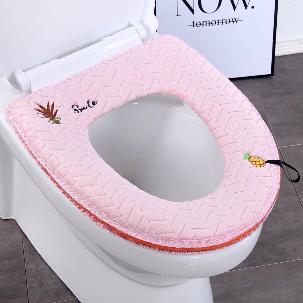 冬季 加厚保暖条绒贴花马桶坐垫拉链马桶套坐便套可水洗马桶圈网红