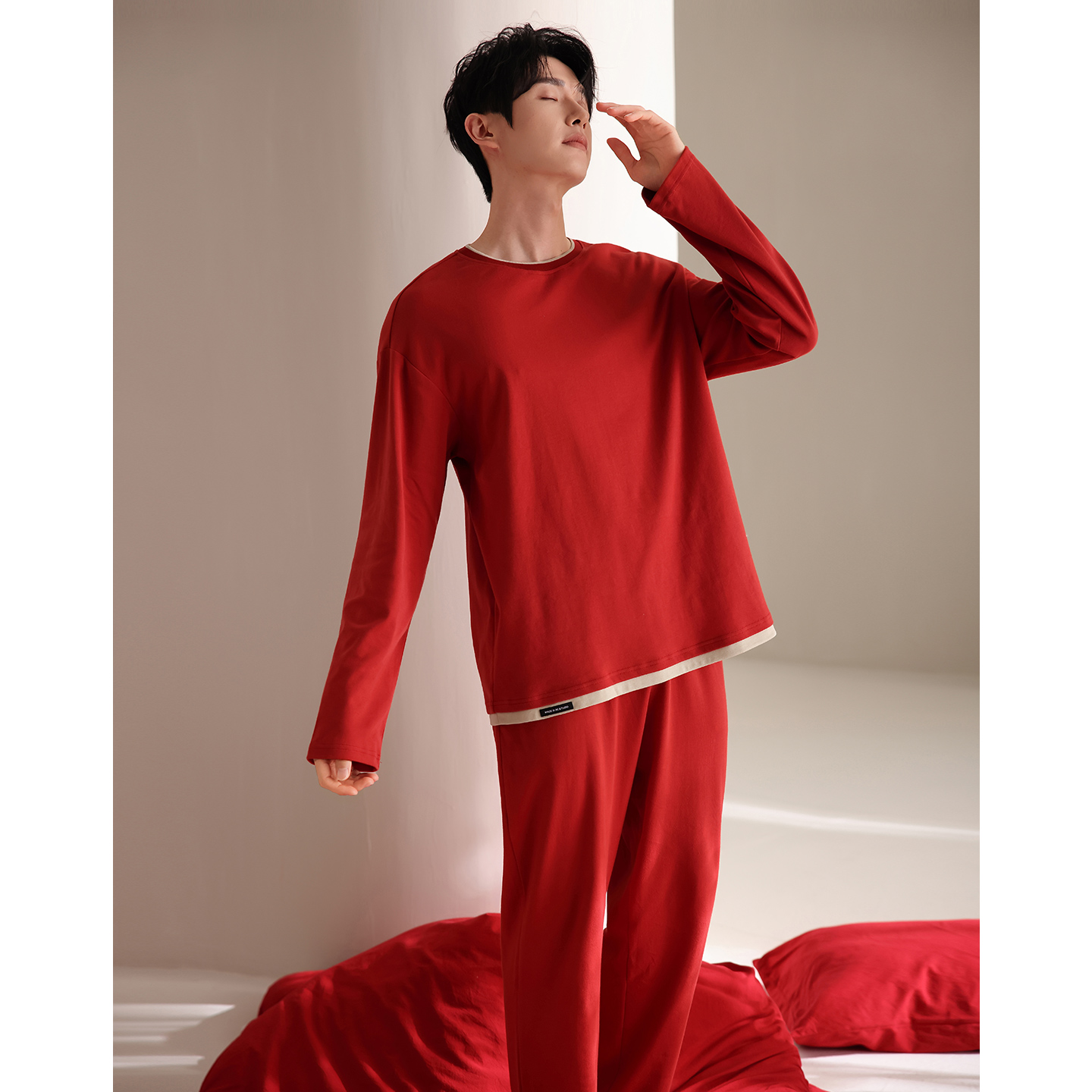 春秋季 通用套装 纯棉长袖 红色本命年家居服四季 大码 睡衣男2025新款