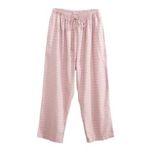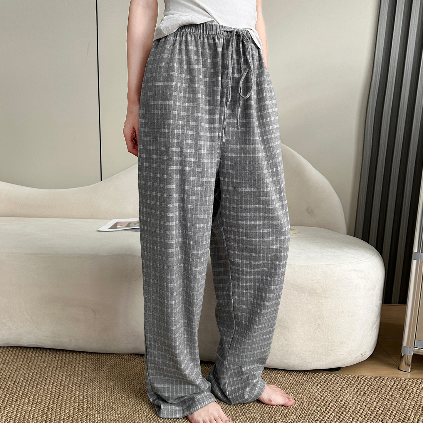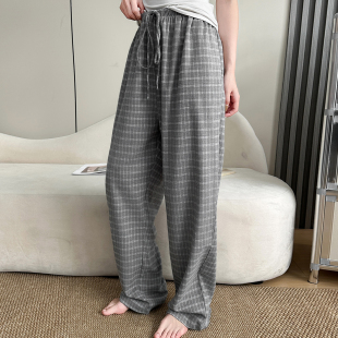 纯棉可外穿200斤加肥加大春秋格子睡裤 大码 秋季 长裤 女 胖mm家居裤