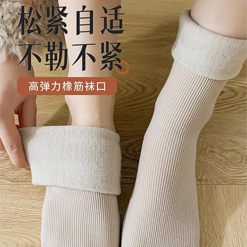 雪地袜子女秋冬款 中筒袜加绒加厚保暖长筒毛圈睡眠女士长袜厚袜子