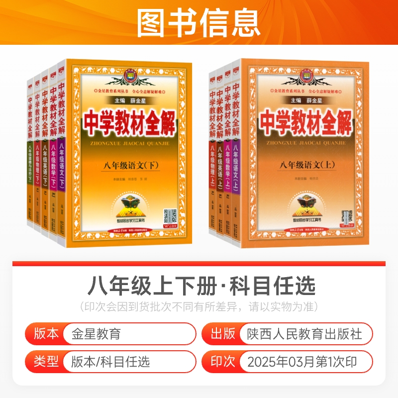 2025秋初中教材全解八年级上册语文数学英语物理政治历史地理生物全套人教版 北京初二8八上下册课本同步解读解析预习辅导书薛金星