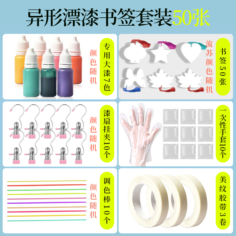 漂漆书签空白卡手工diy材料包小学生自制非遗漆染空白卡纸学生制作创意漆书签大漆颜料漆扇书法国画全套批发