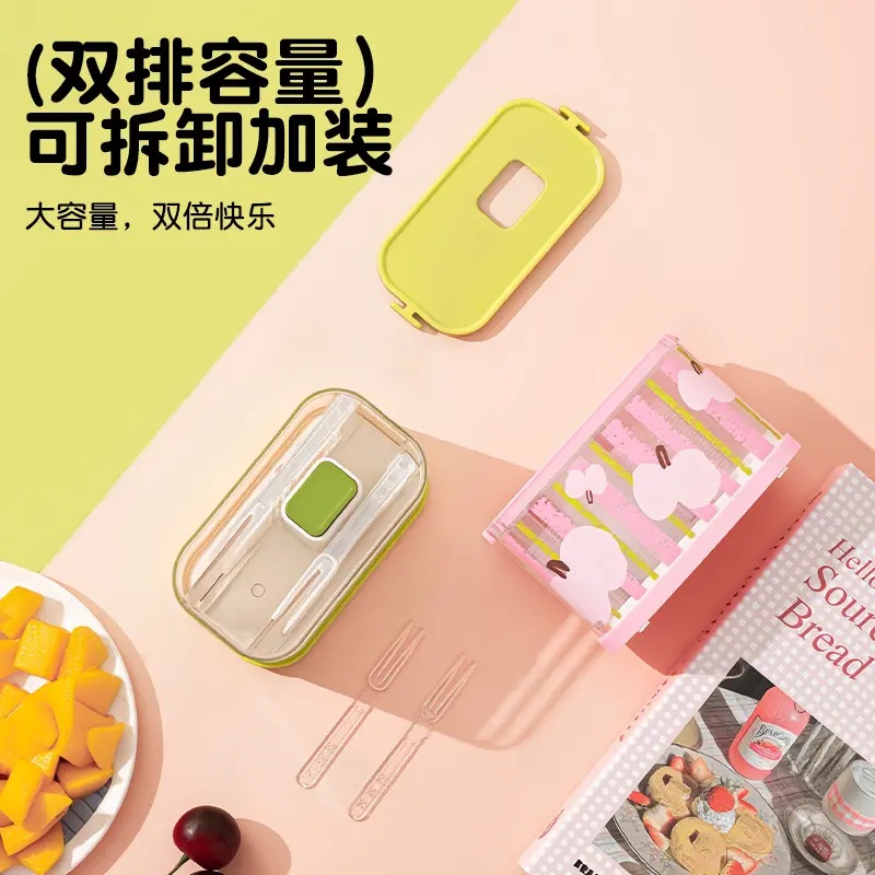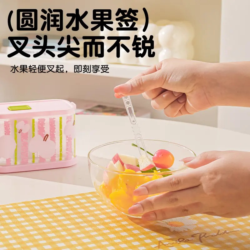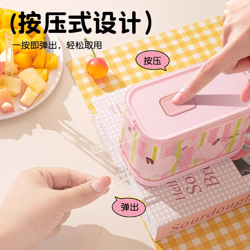 马卡龙色按压水果叉按压式 水果叉盒家用多功能收纳盒一次性水果签