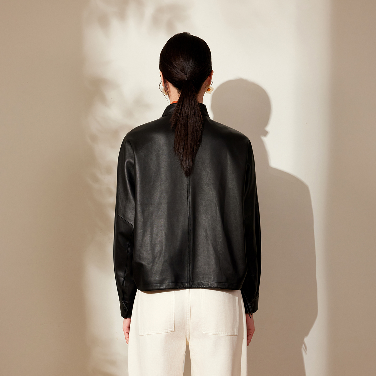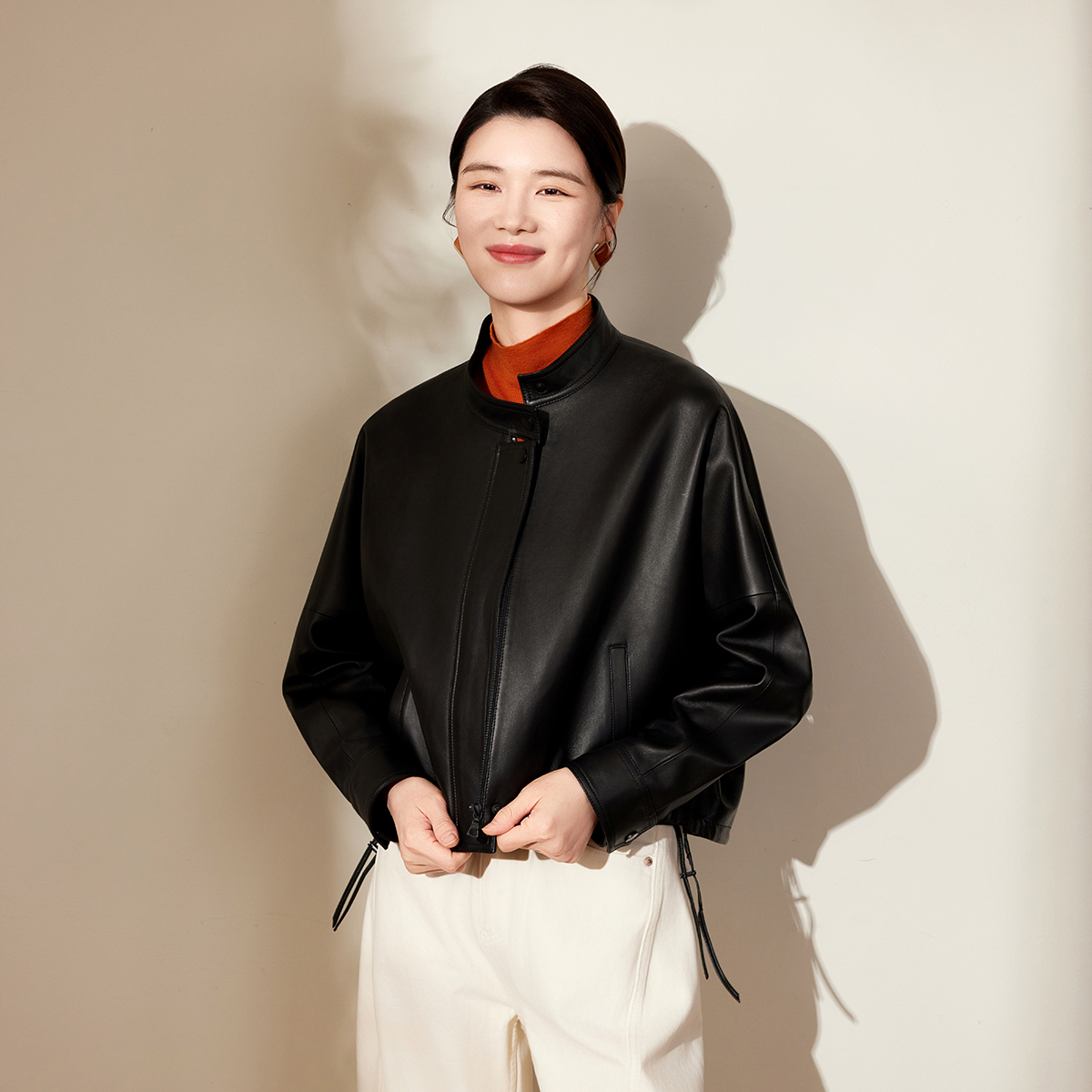 ICH 复古休闲夹克外套 MODE高级质感设计小众立领皮衣外套机车美式
