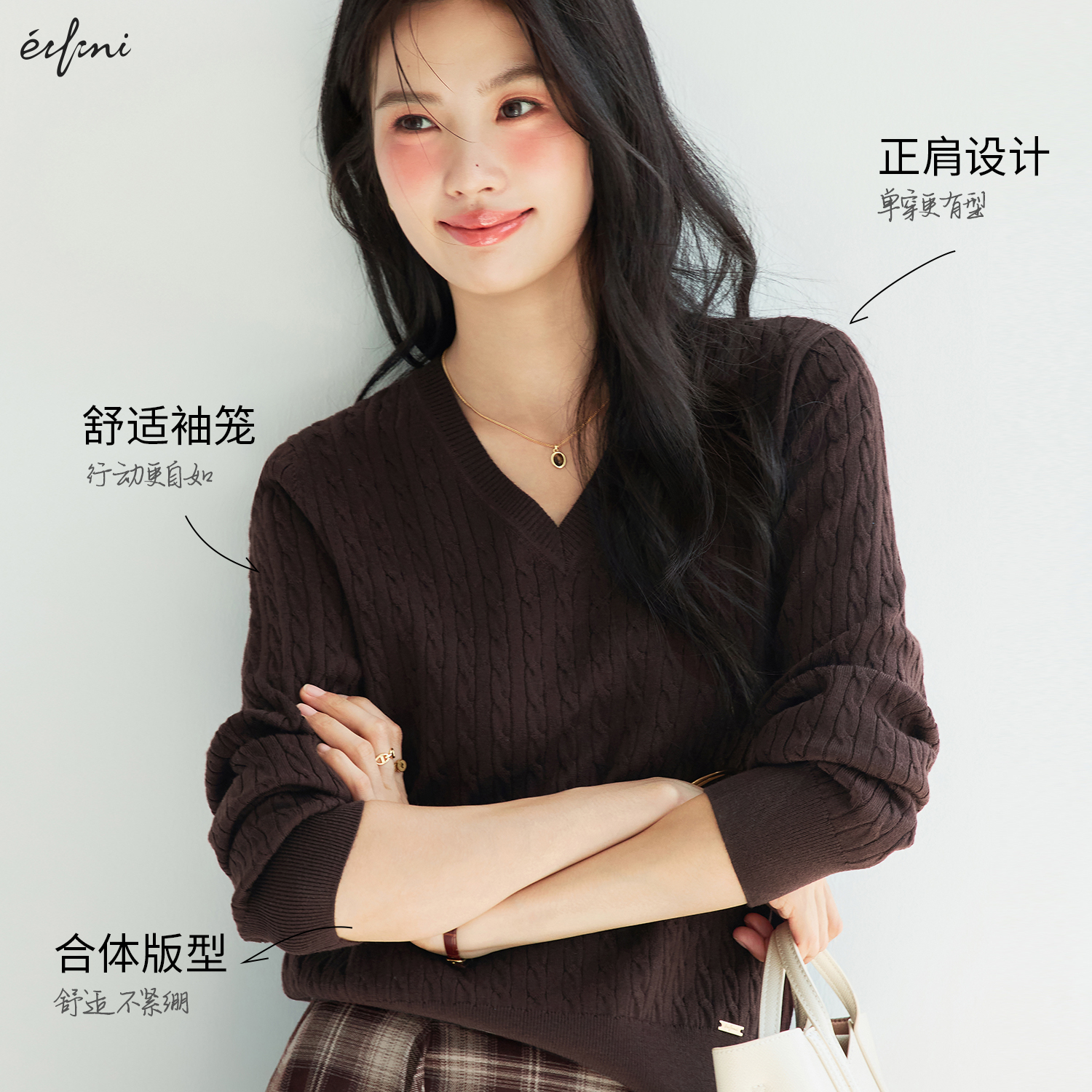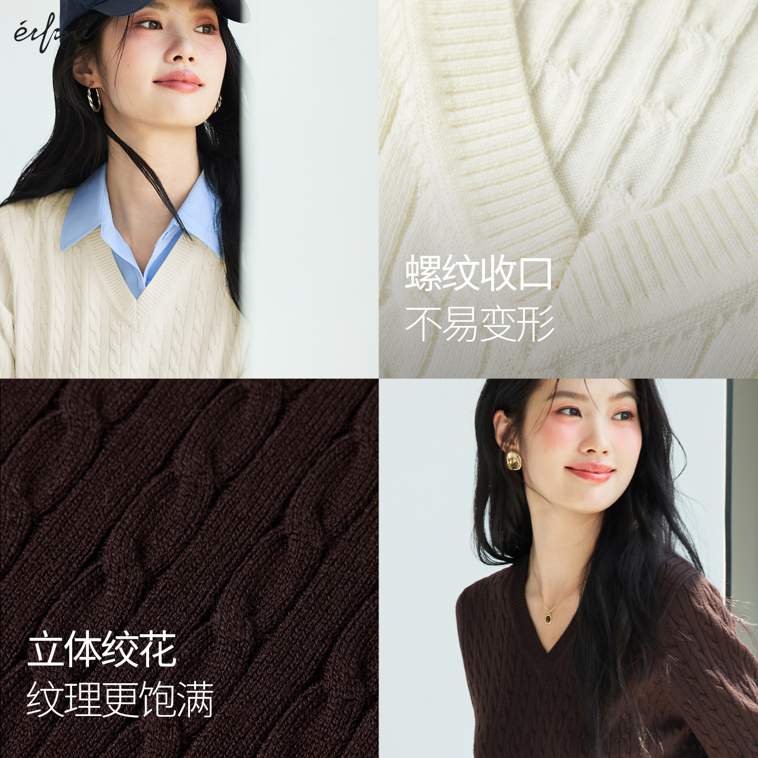 长袖 绞花毛衣内搭圆领开衫 针织衫 新品 上衣 2025秋季 POLOWALK女式