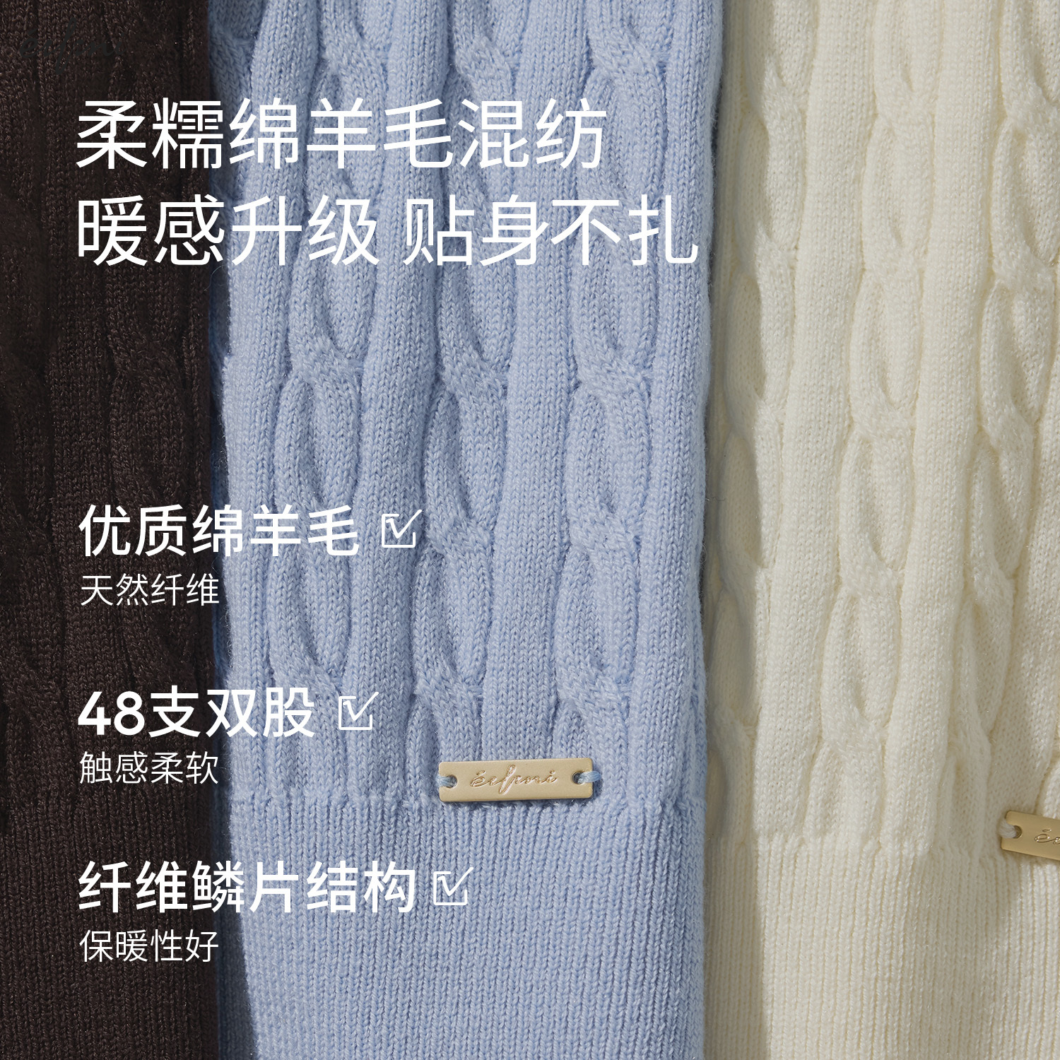 绞花肌理圆领毛衫 森柔 短款 女冬季 百搭叠穿打底上衣 森马针织开衫