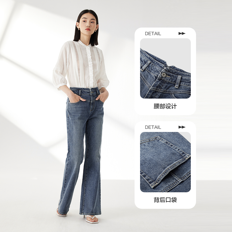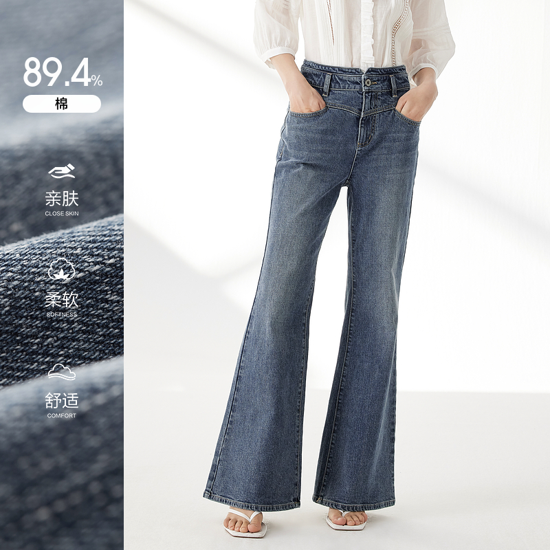 女2025秋季 百家好高腰牛仔裤 新款 印花垂感直筒裤 Basic 长裤 House