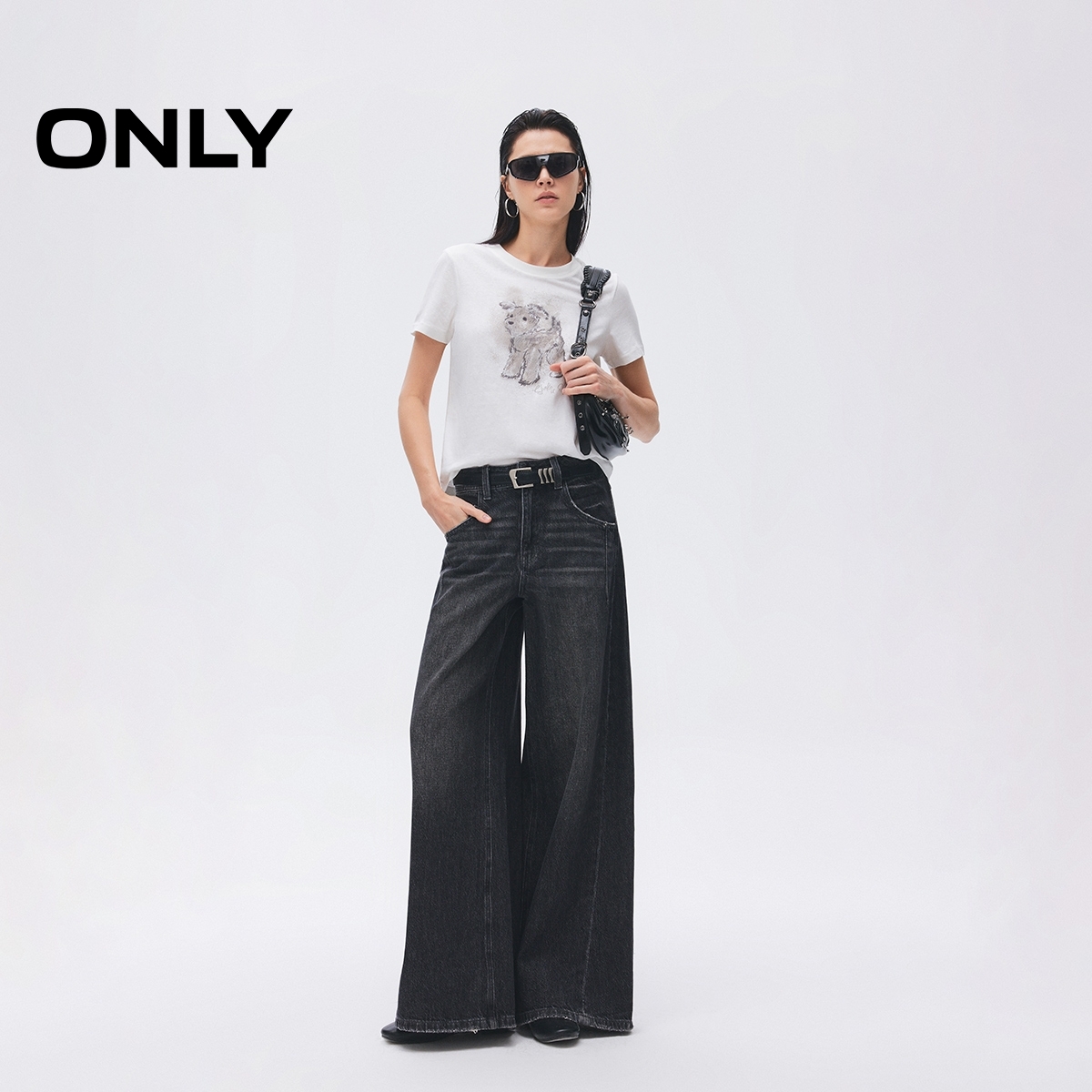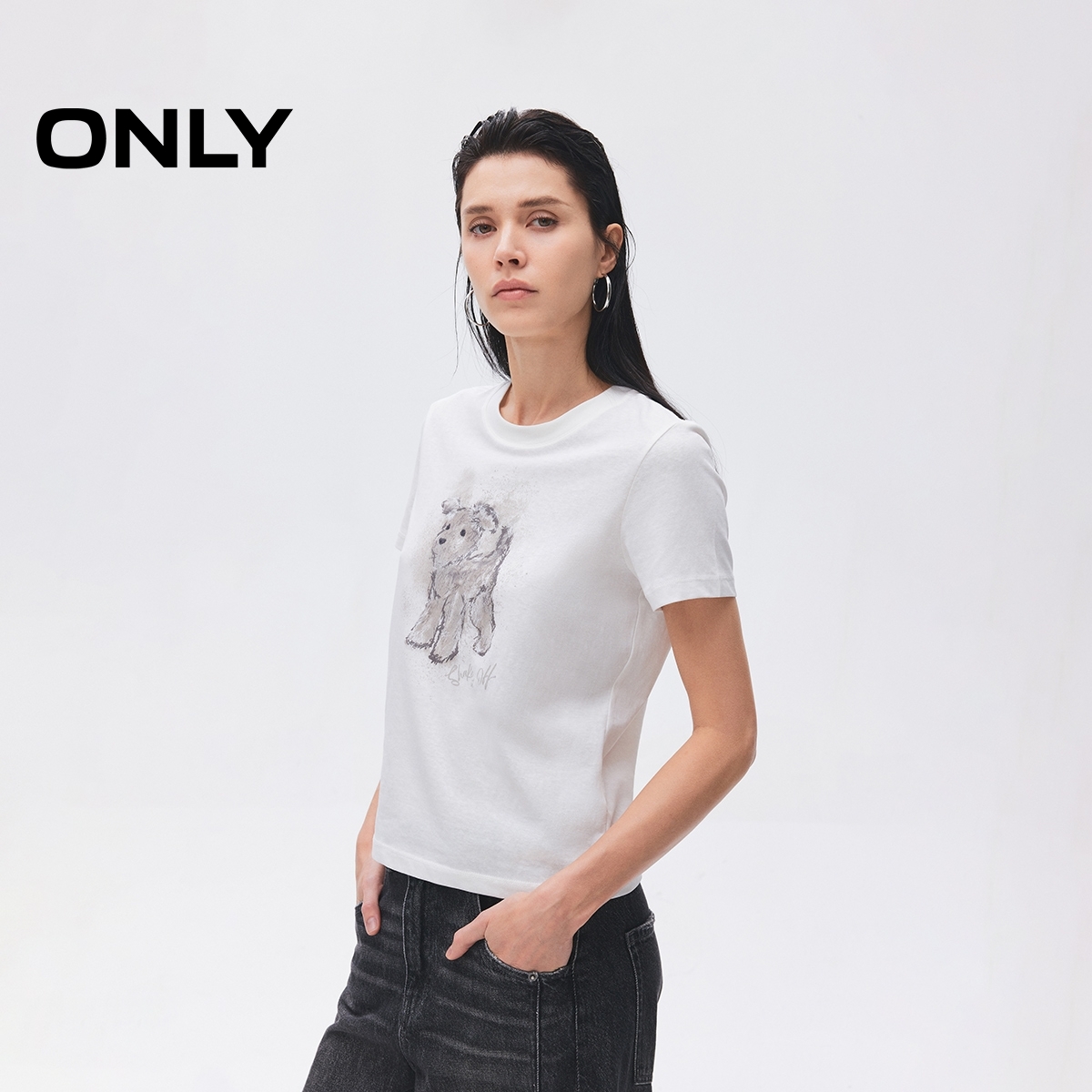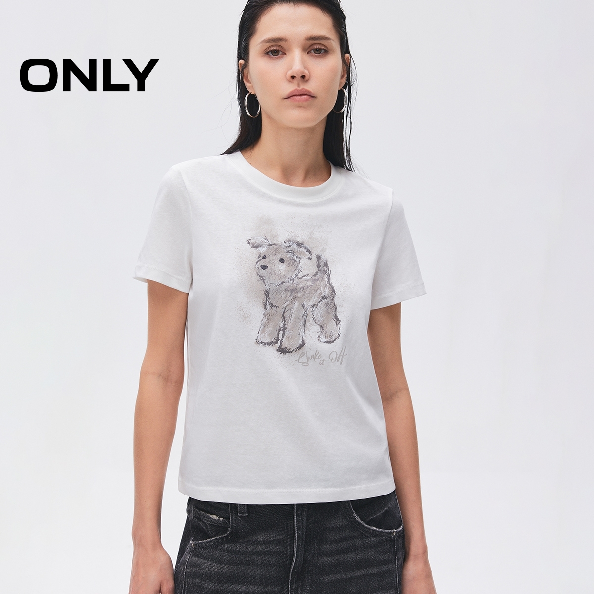 ONLY2025秋季 可爱随性宠物印花亲肤舒适透气正肩圆领T恤女 新款