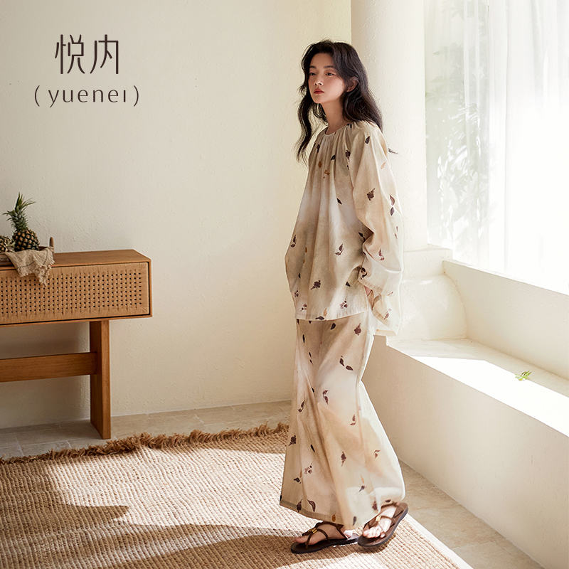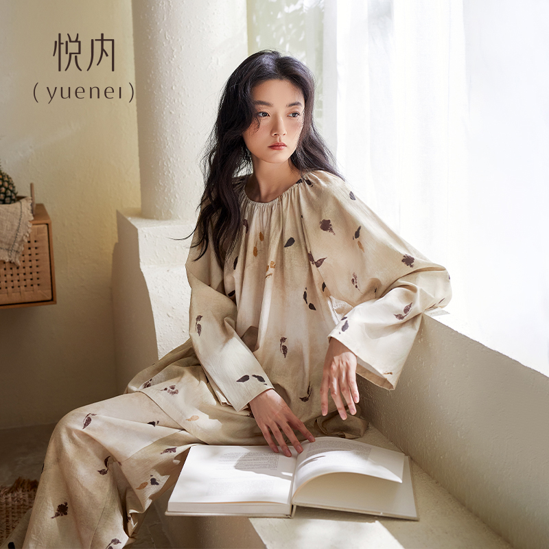纯棉女士长袖 睡衣新款 秋款 家居服秋冬全棉大码 芬腾春秋季 套装 女款