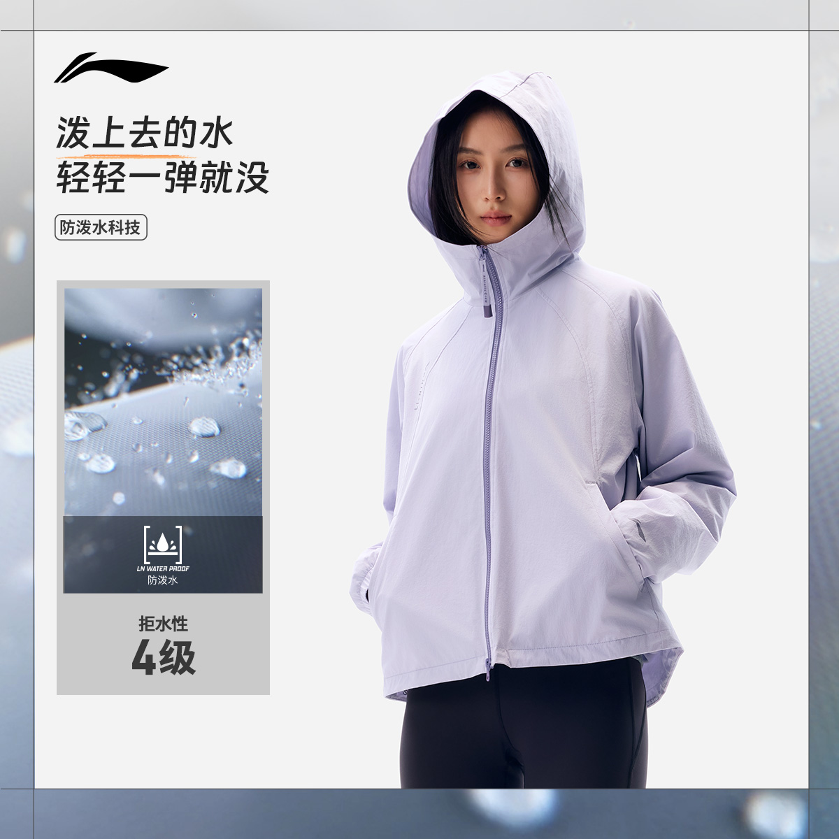 李宁风衣女秋季 防泼水防风上衣户外轻运动软壳连帽运动外套 新款