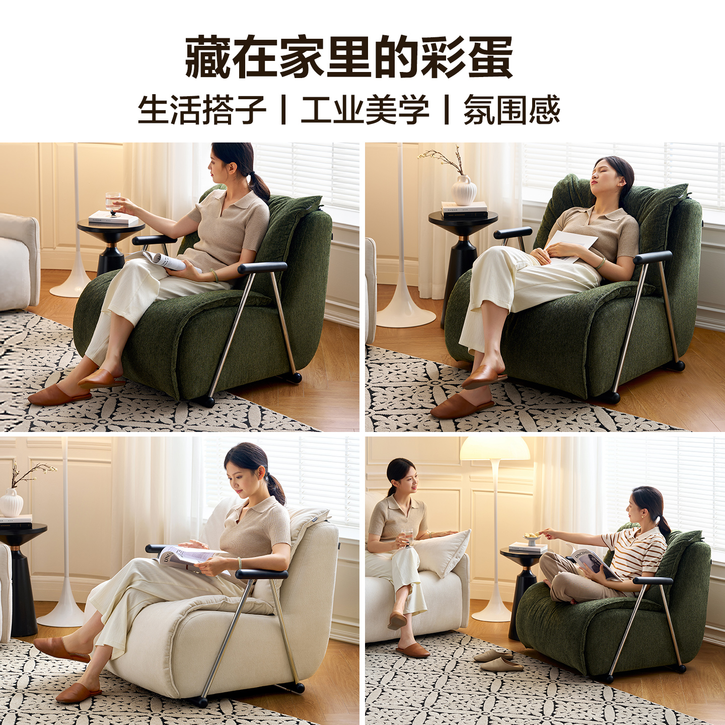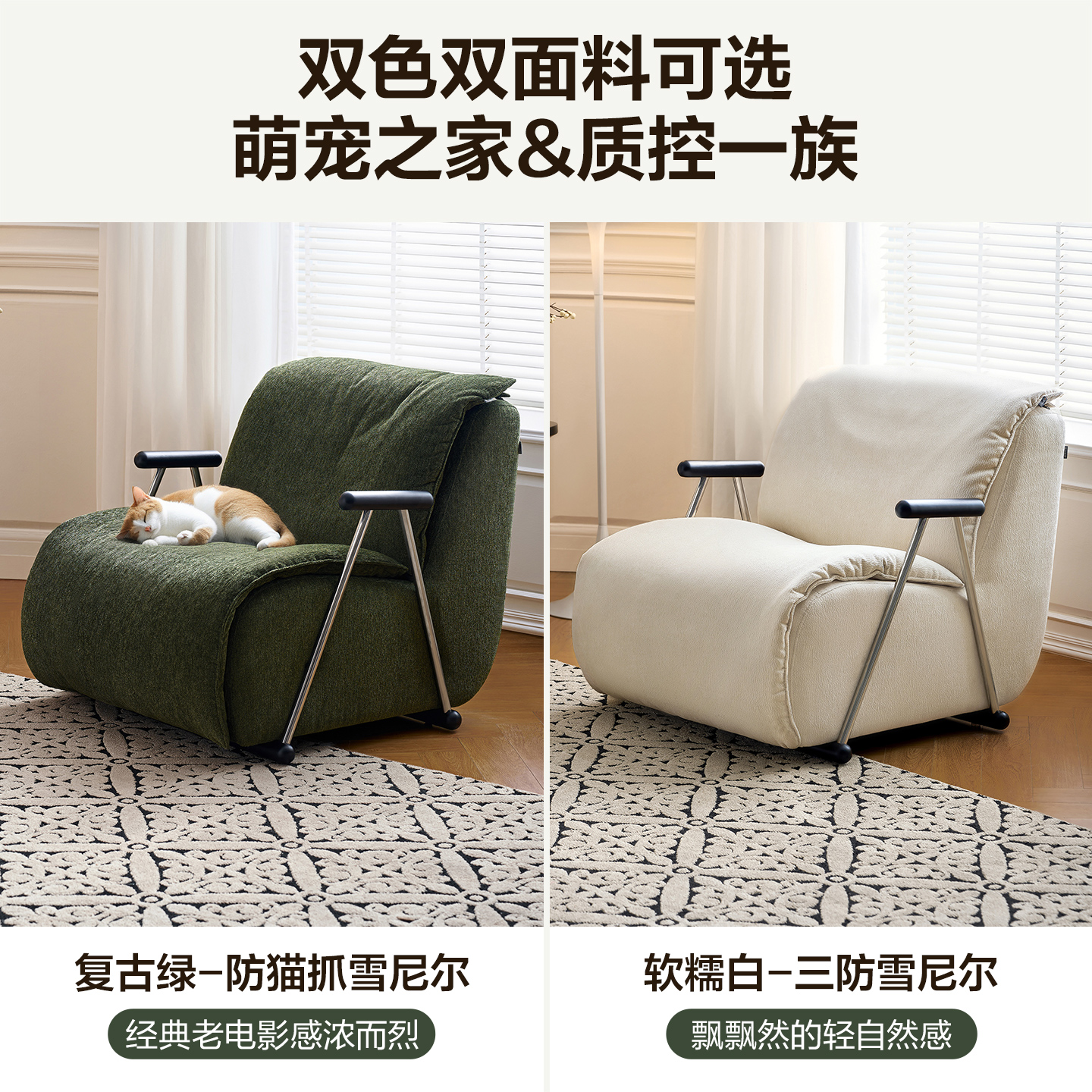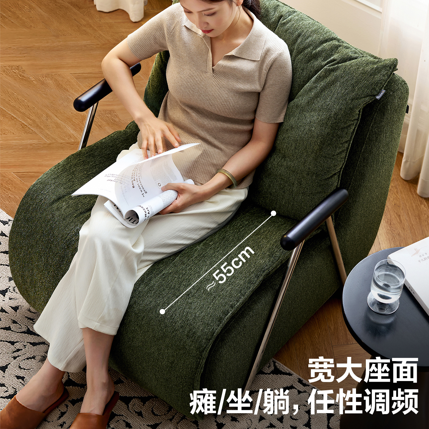 全友家居复古风绿色单人沙发椅卧室阳台雪尼尔布艺懒人沙发可拆洗
