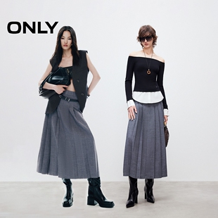 醋酸中长裙高级感裙子S 秋季 one more羊毛深灰色半身裙女2025新款