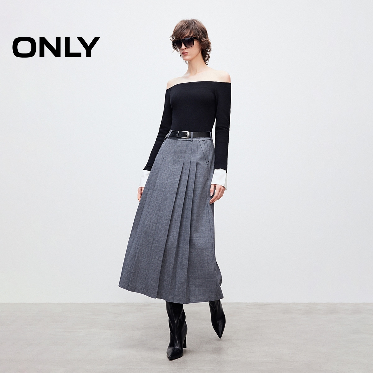 25冬季 desire一字领收褶上衣半身裙套装 orange 新款 淡人套装