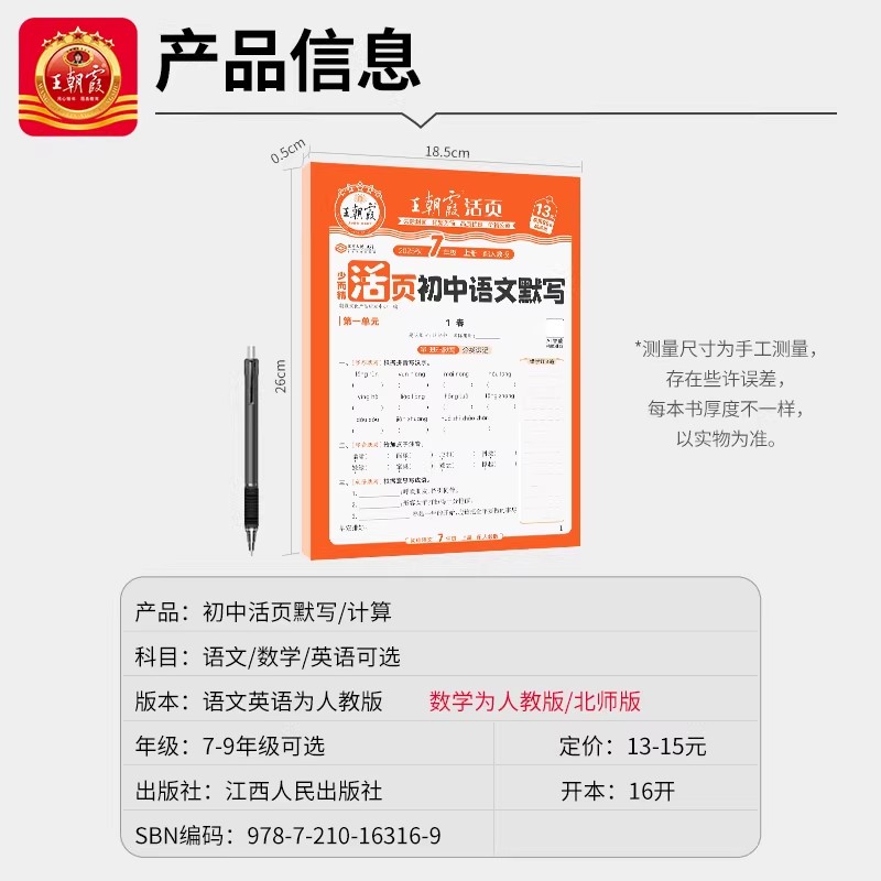2025王朝霞活页默写计算初中七年级上册八九年级错题本语数英同步练习册一课一练小四门必背知识点数学语文专项英语人教版 北师试卷