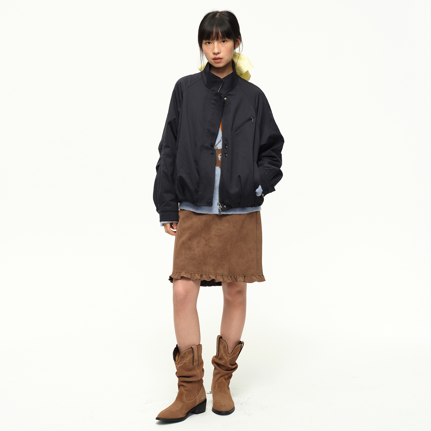 omont蛋挞家复古立领飞行员夹克外套2025秋季 宽松休闲短上衣 新款