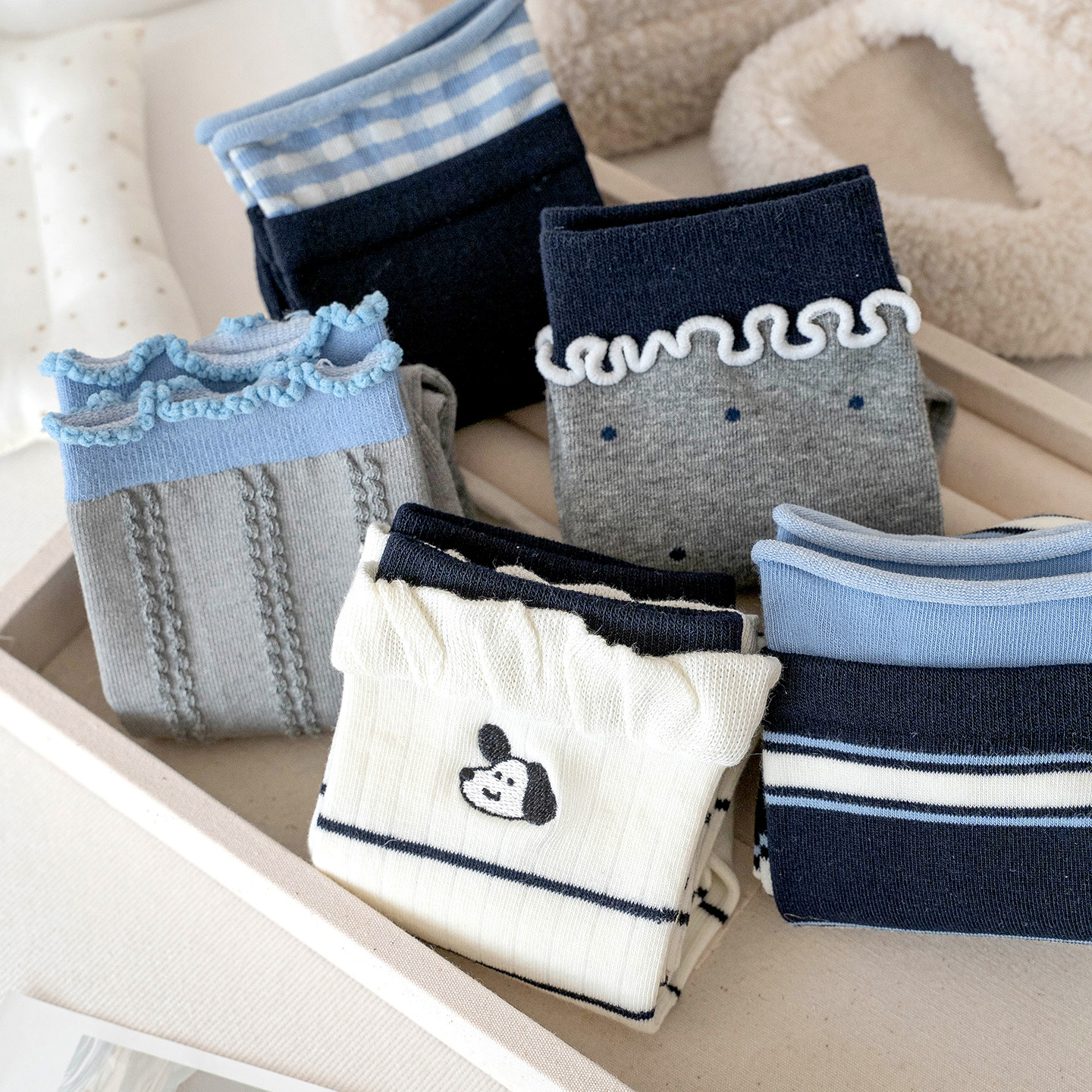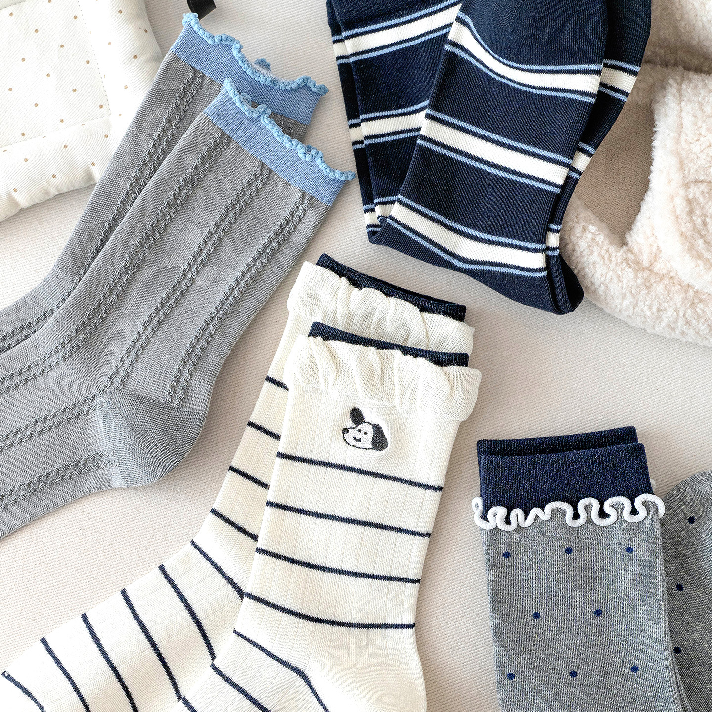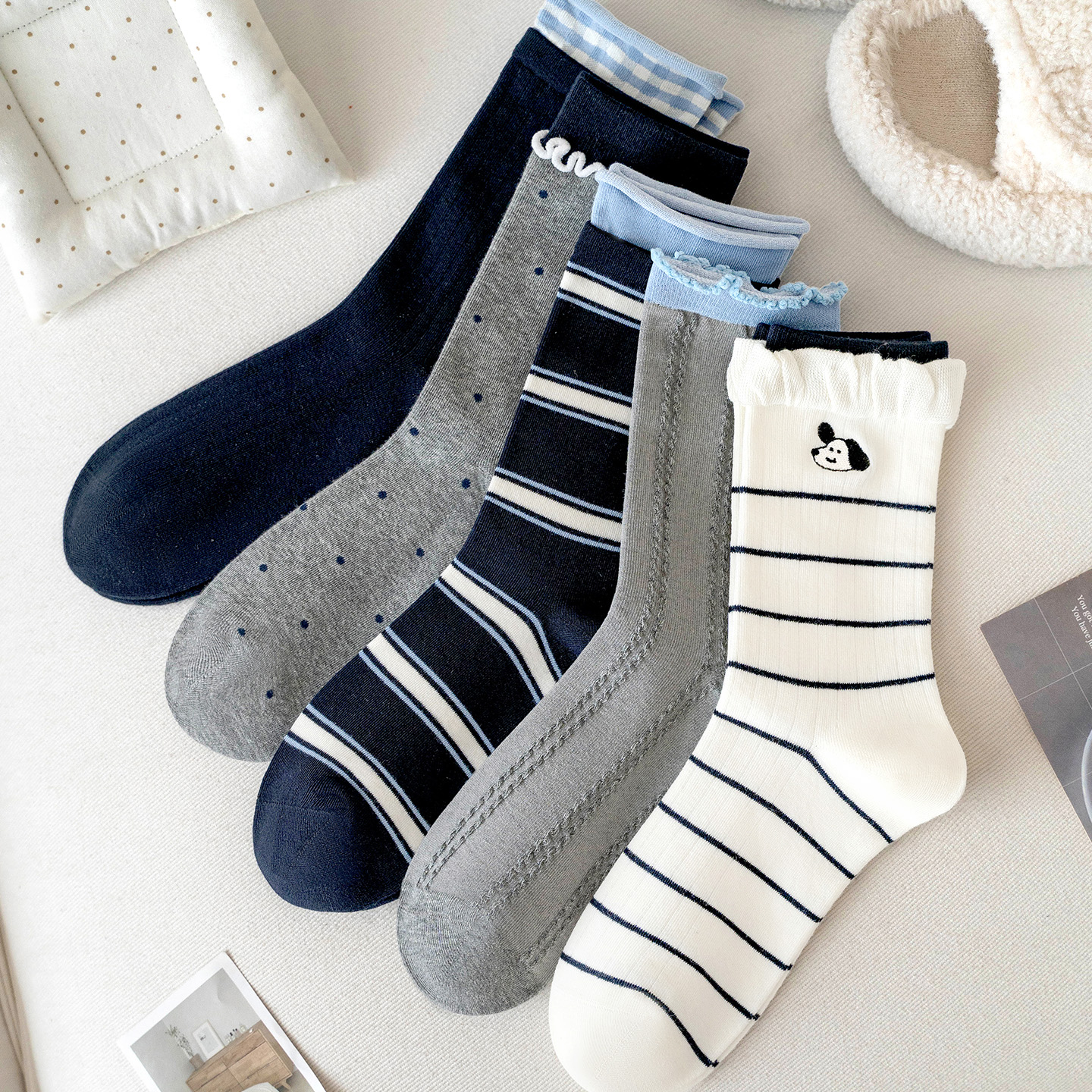 卡拉美拉袜子女2025新款 秋冬条纹袜学院风棉袜撞色女袜百搭中筒袜