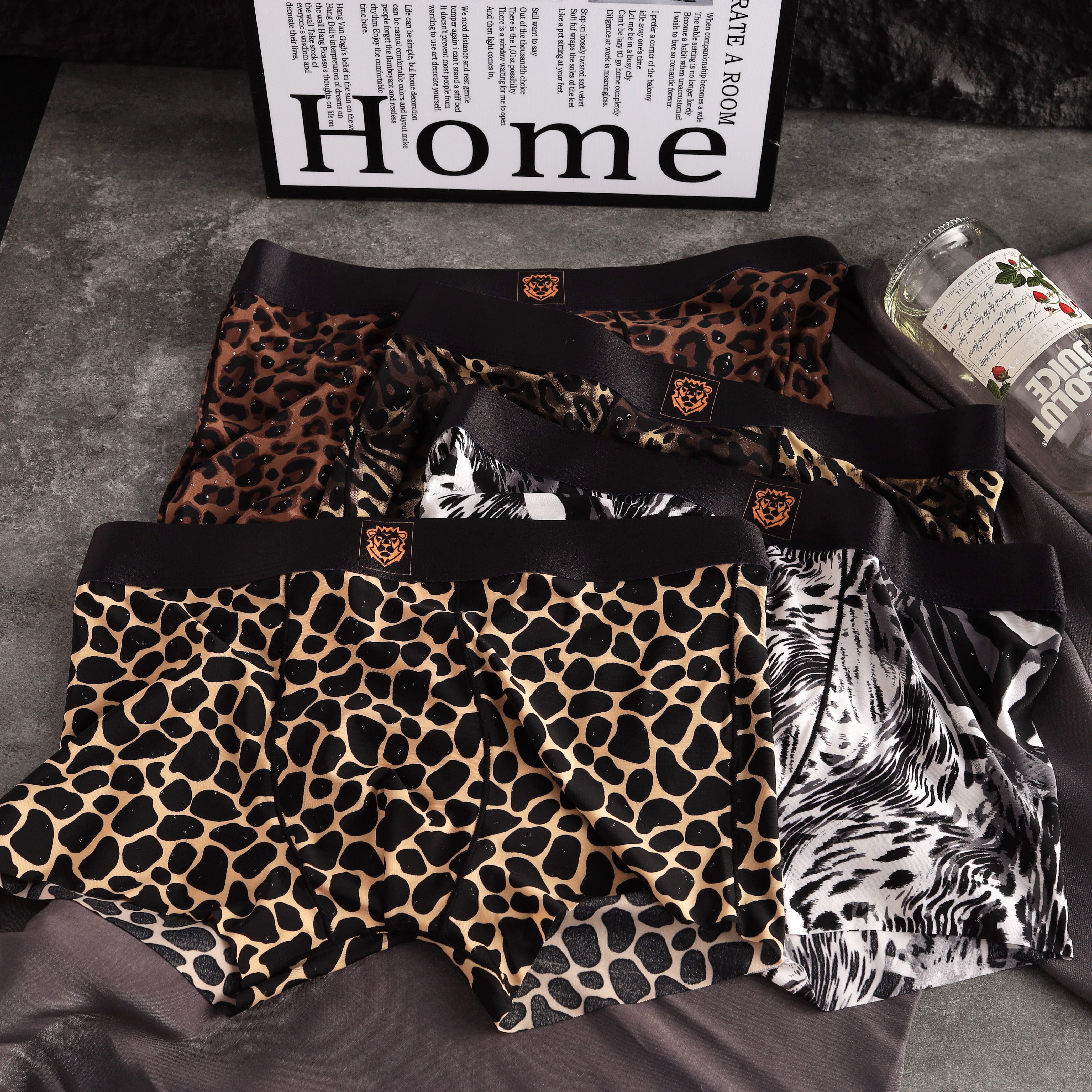 性感设计贴身无痕底裤 豹纹冰丝四角裤 透气清凉面料个性 舒适款 男士