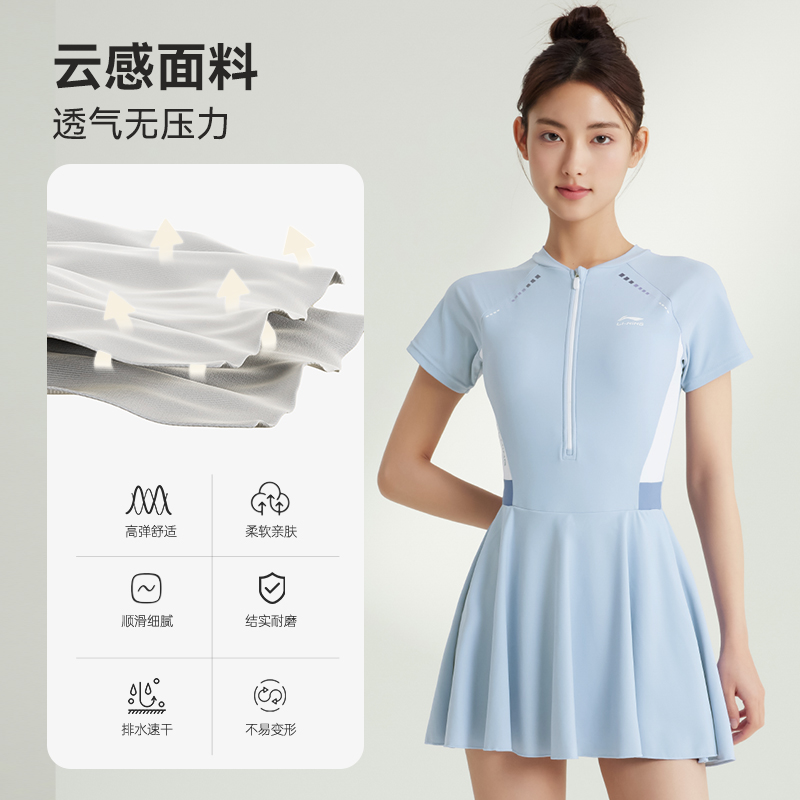 李宁女士泳衣2025新款 微胖遮肉连身显瘦泡温泉 高级游泳衣保守大码