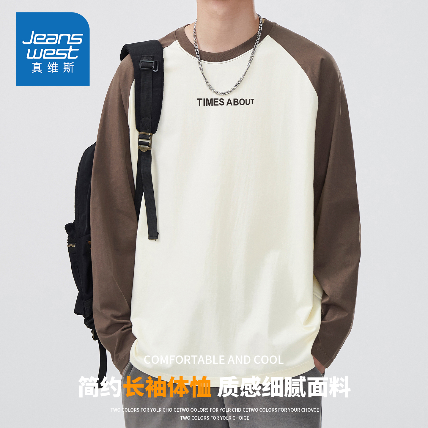 宽松显瘦打底衫 KZH真维斯时尚 新款 T恤男秋季 潮流重磅休闲上衣 长袖