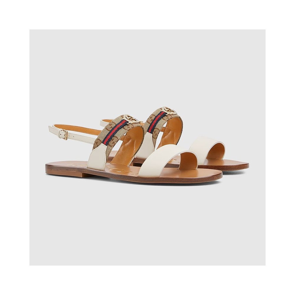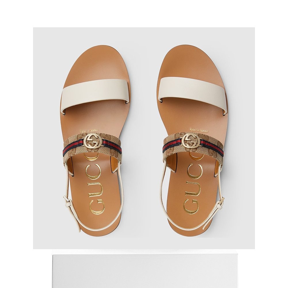 女士白色皮革双G条纹织带凉鞋 自营欧洲直邮Gucci 古驰