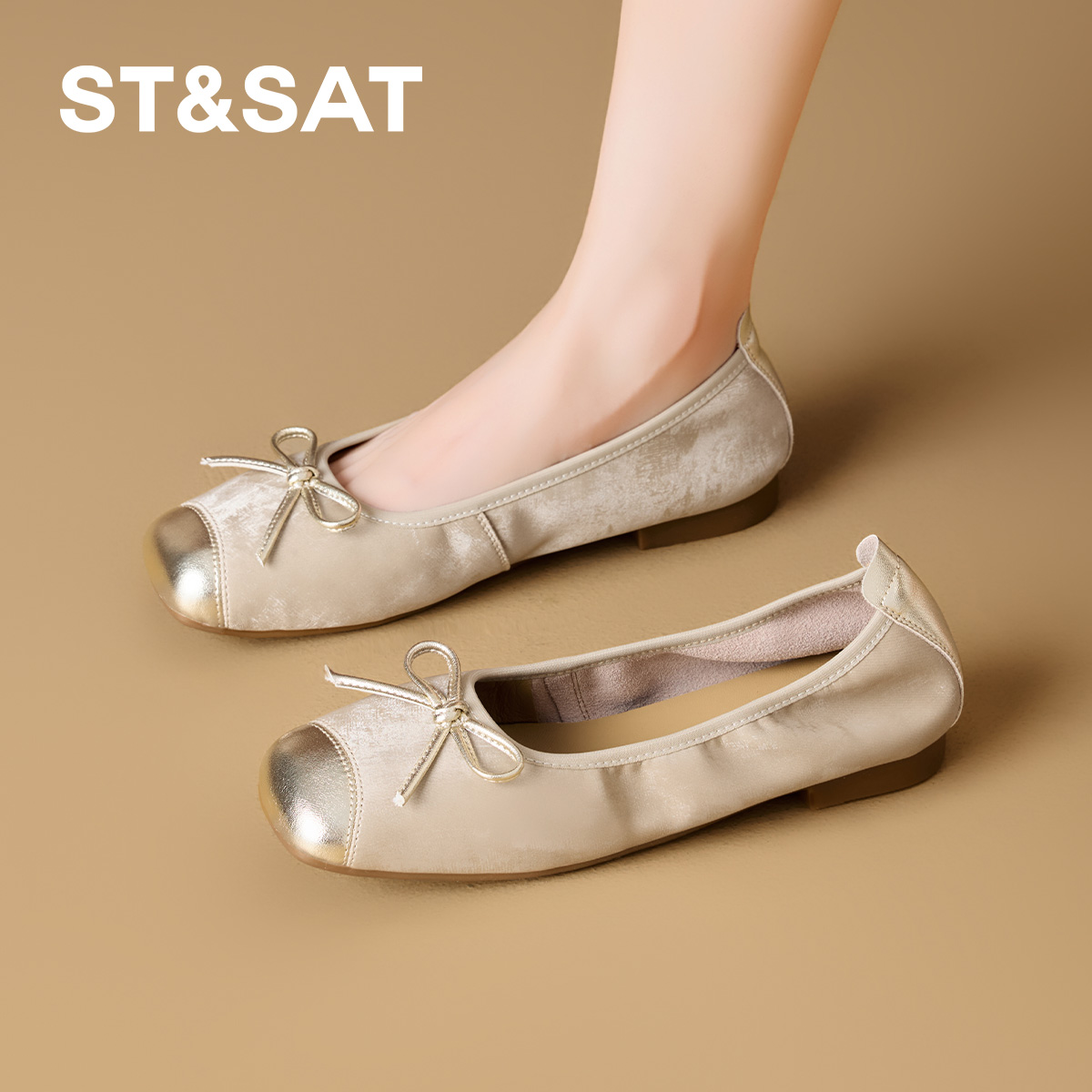 羊皮玛丽珍浅口女红色单鞋 百思图莫奈花园25秋新款 叶一茜同款