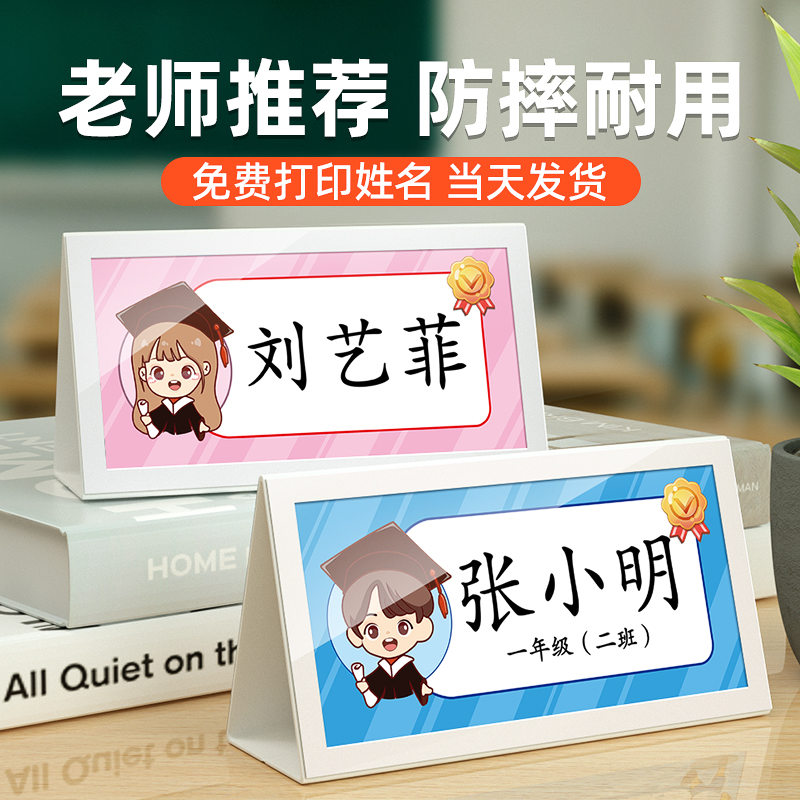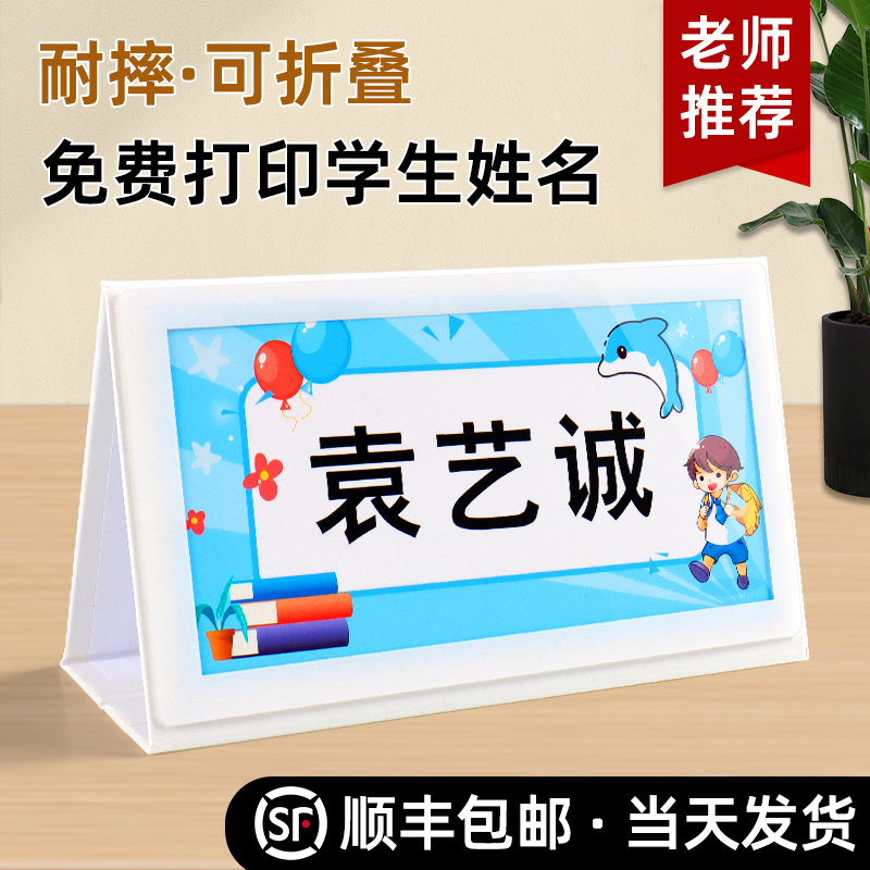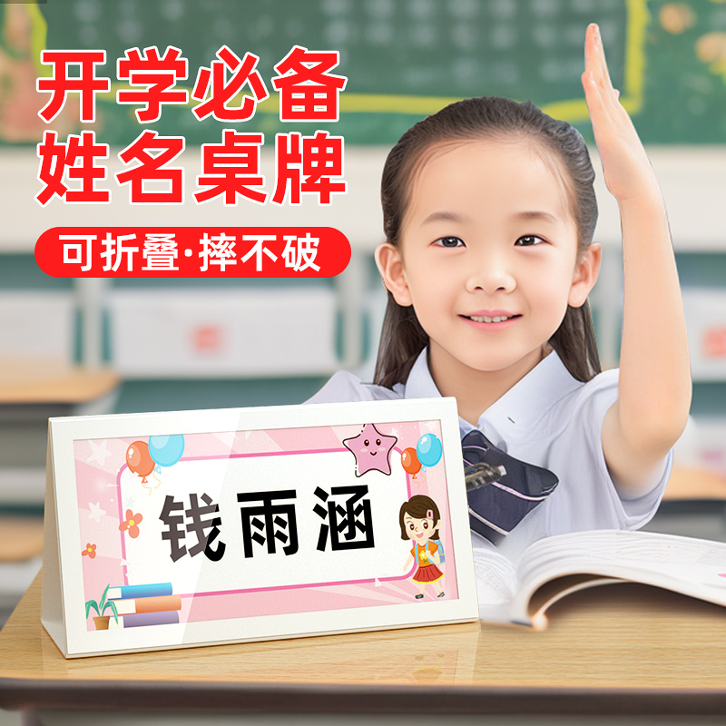 姓名牌小学生桌牌亚克力立牌一年级名字牌新生专用座位牌定制可折叠幼儿园新生入学席卡双面三角展示立牌摆台