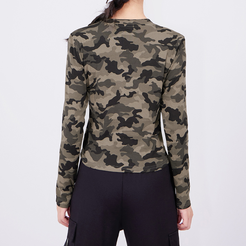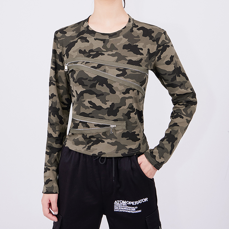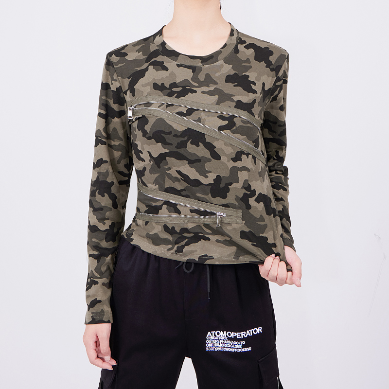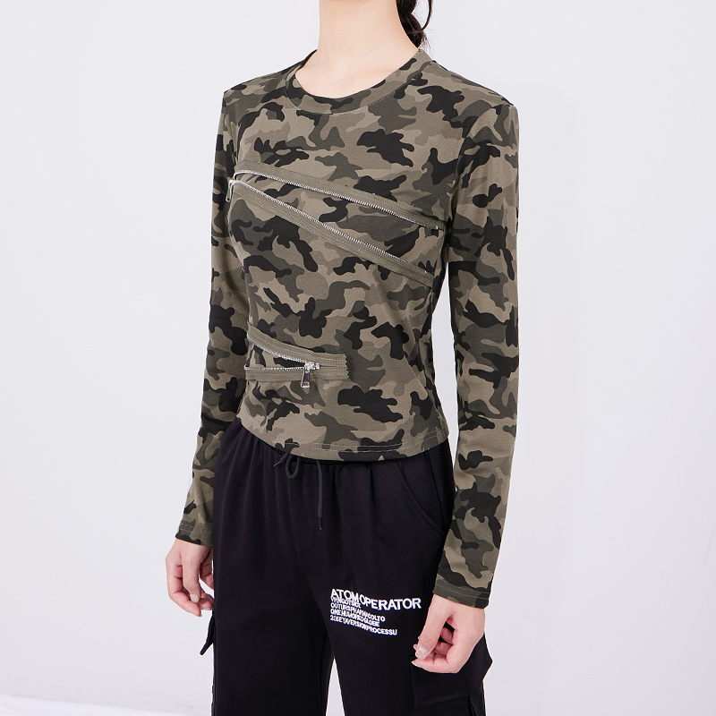 T恤女修身 设计感迷彩印花短袖 显瘦上衣 复古辣妹风长袖 十三行美式