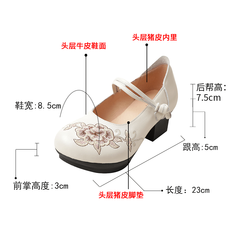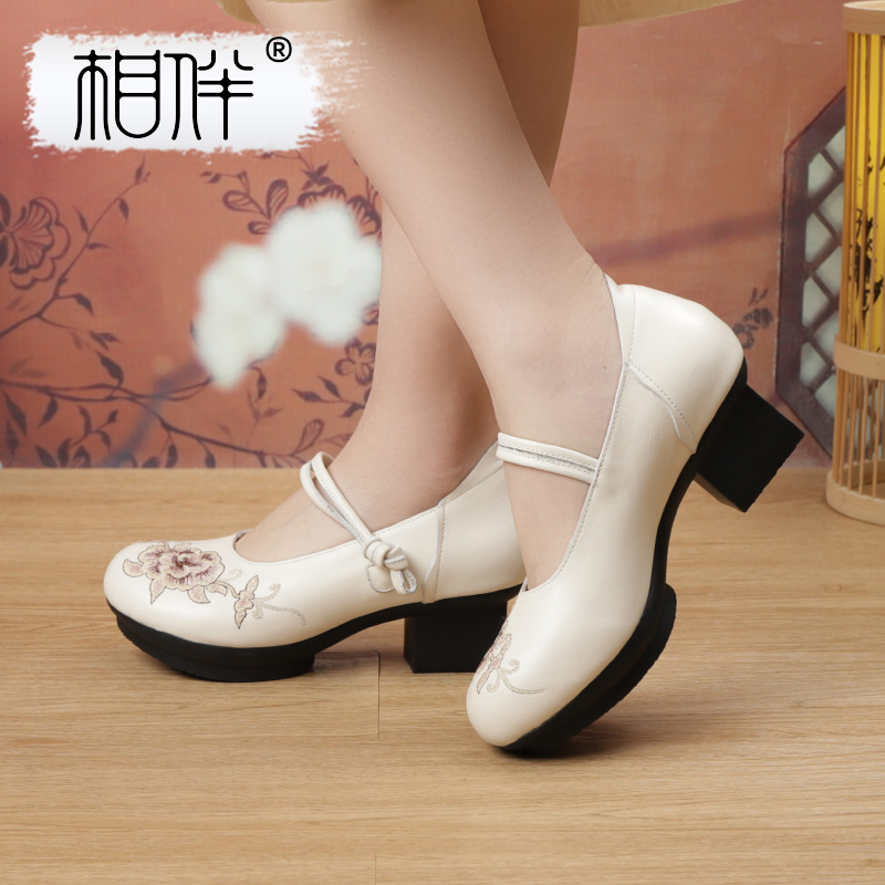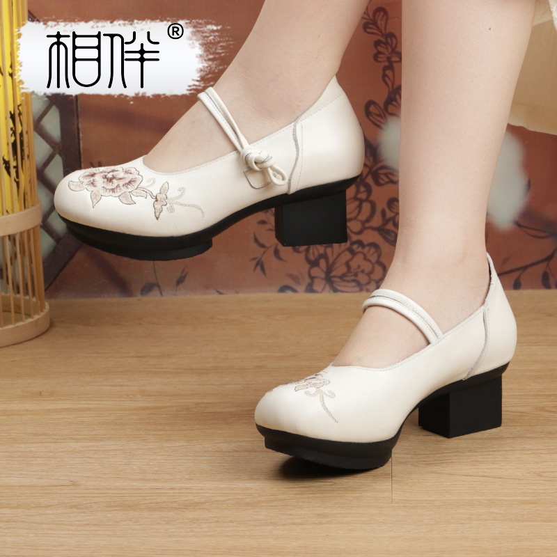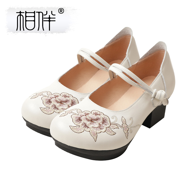 民族风复古鞋 相伴真皮2025新款 女绣花厚底皮鞋 粗跟单鞋 子 国风女鞋