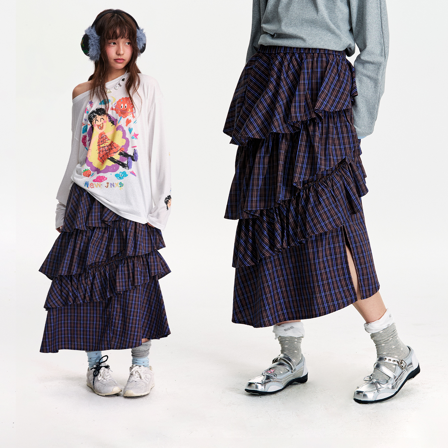 Juicy 灰色蝴蝶结A字长裙子 Couture橘滋半身裙女2025年秋冬新款