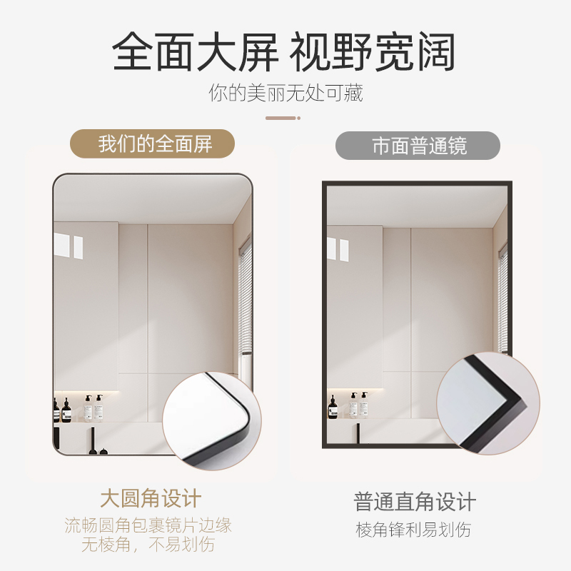 奈高化妆镜女生梳妆镜家用卧室贴墙自粘免打孔学生宿舍卫生间厕所