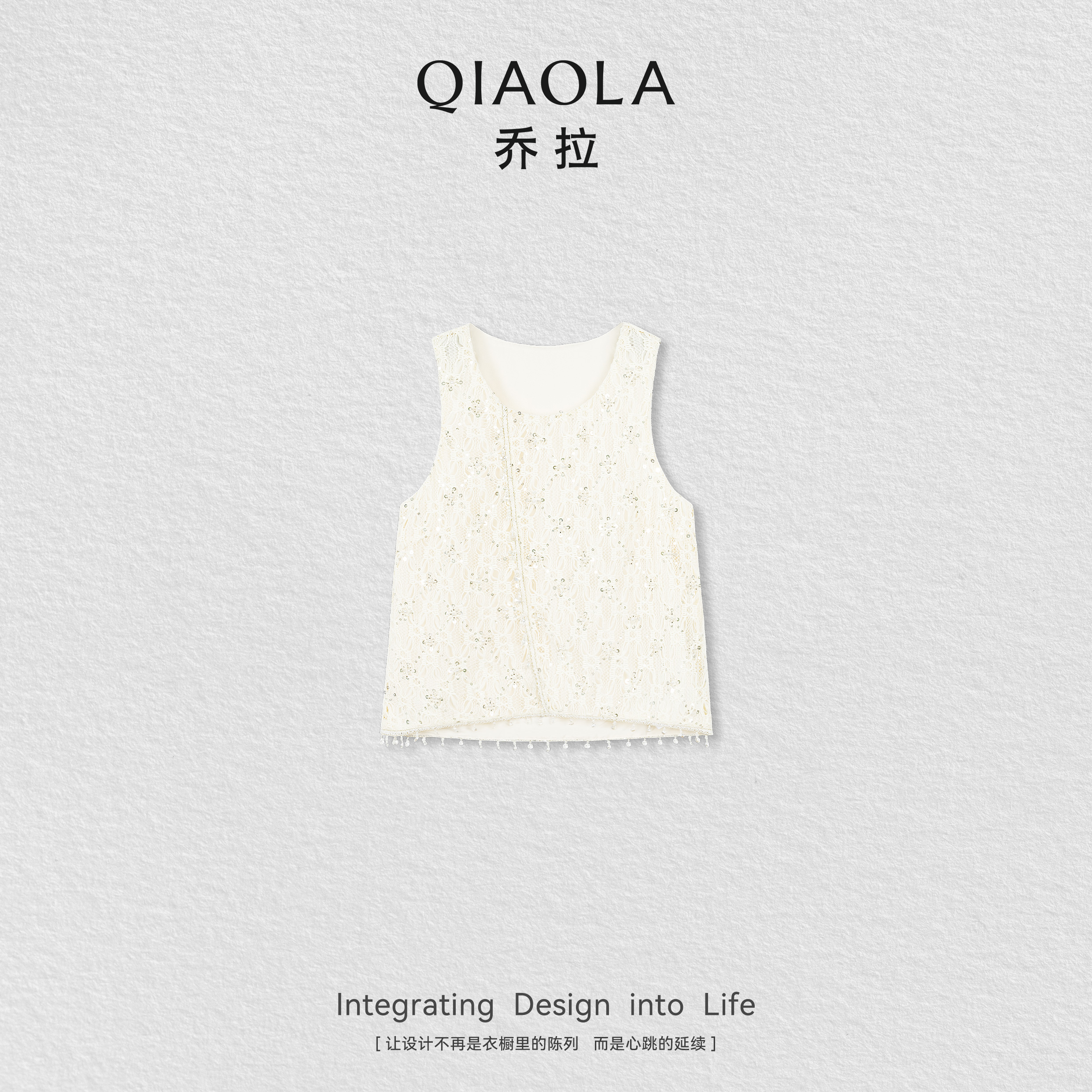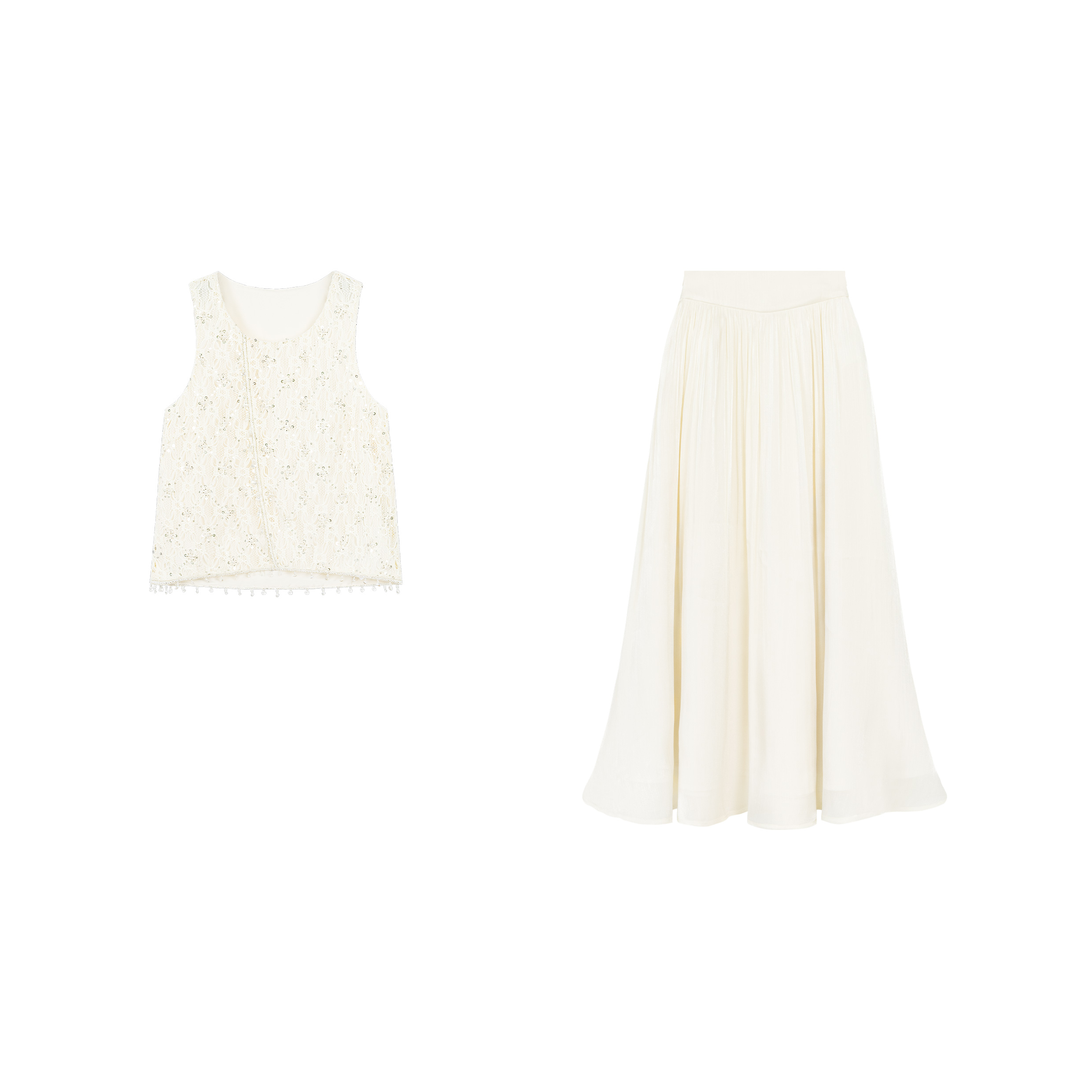 云梦仙踪 背心上衣裙子套装 夏季 名媛风杏色圆领无袖 女 新款 乔拉