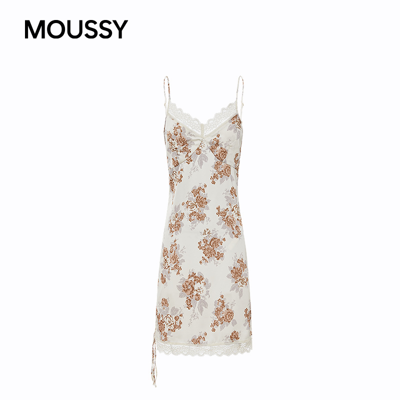 3011 复古蕾丝边抽绳褶皱吊带连衣裙028IA233 MOUSSY 2025早秋新品