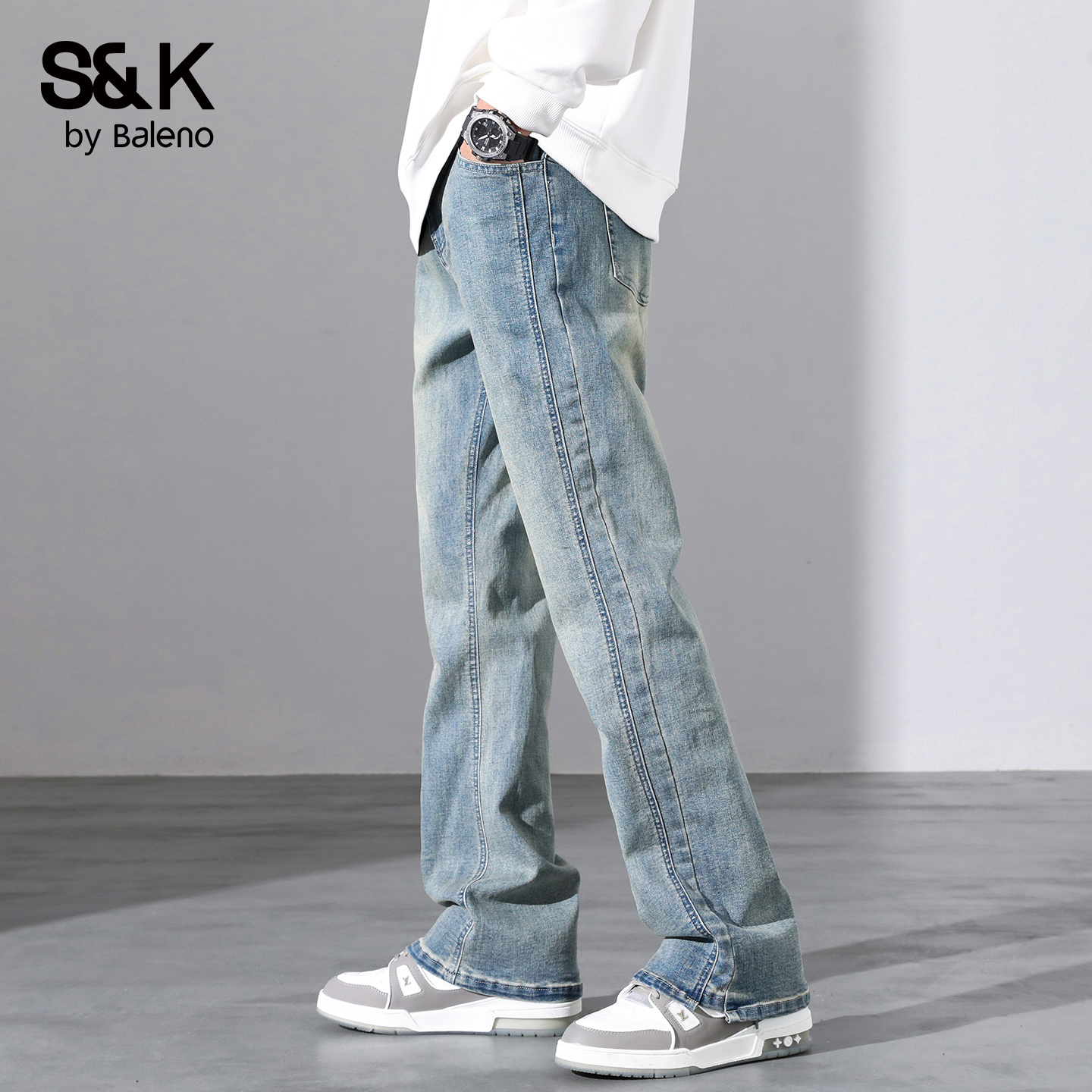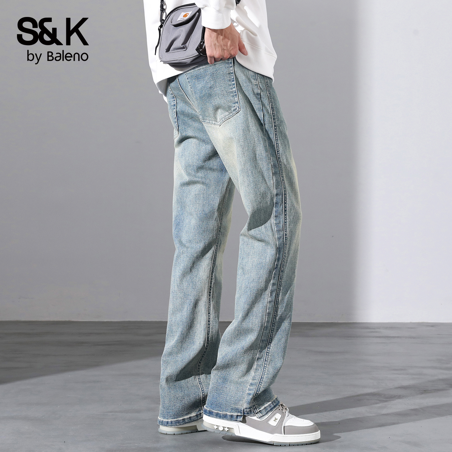 子MS 宽松直筒微喇叭百搭水洗休闲裤 班尼路SK牛仔裤 男2025春秋美式