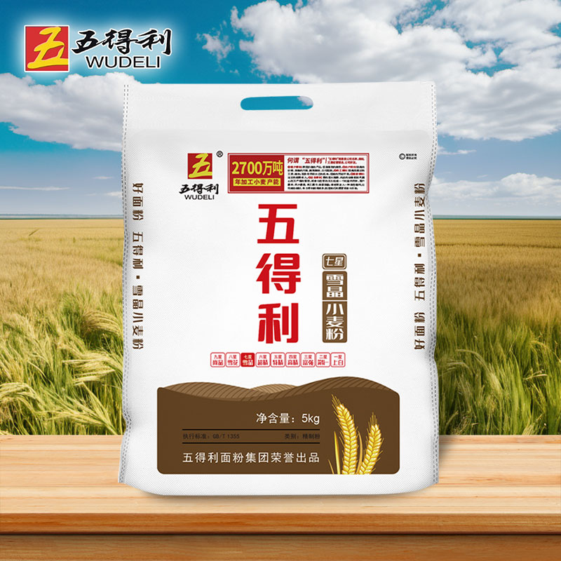 五得利七星雪晶面粉5kg大包家用中筋小麦粉馒头包子面条好面精制