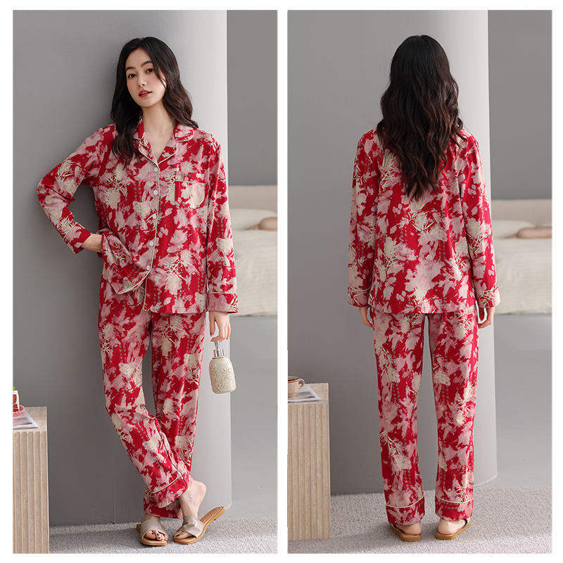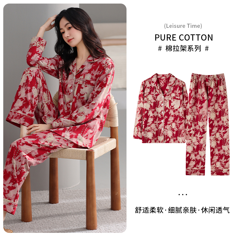 25年情侣红色睡衣春秋季 男女喜庆结婚新婚卡通家居服 柔软纯棉套装